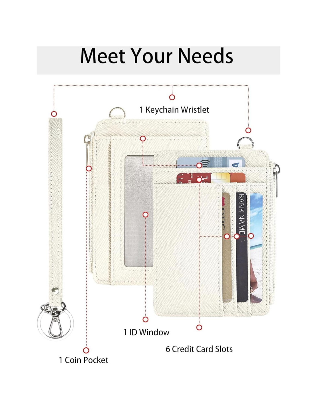 - Cartera con Llavero de Muñeca: Este portador de tarjetas presenta un diseño de muñeca, lo que facilita adjuntar tus llaves o colgarlo en tu bolso, liberando tus manos y dándote tranquilidad. Asegura que tus esenciales estén seguros y sean de fácil acceso