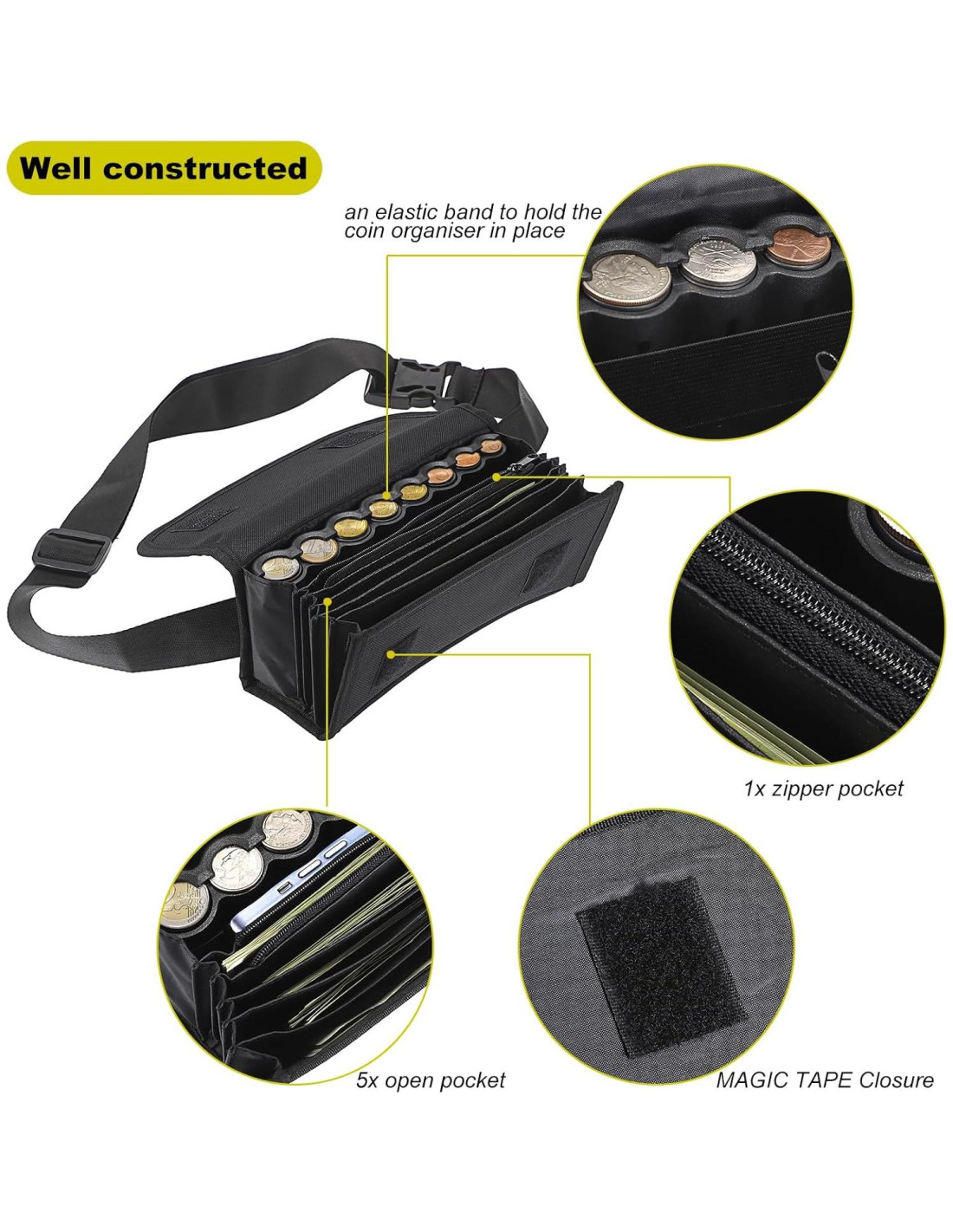 - DISEÑO CÓMODO - Hay un total de 6 capas en la billetera, y la última capa se utiliza para colocar los soportes de monedas. Además, hay 5 zonas de moneda, y una capa tiene una cremallera para evitar que los objetos valiosos se caigan. Adecuado para cajeros, contadores, camareras, tiendas, servidores de restaurantes, coleccionistas, etc.