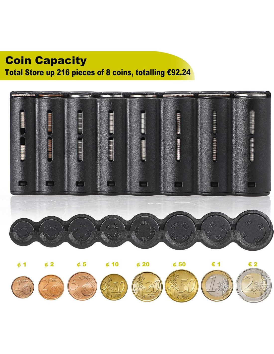 - CAPACIDAD DE MONEDAS - La cantidad de llenado del dispensador de monedas: 2 Euro=24 piezas=48.00, 1 Euro=23 piezas=23.00, 50 Cent=22 piezas=11.00, 20 Cent=25 piezas=5.00, 10 Cent=27 piezas=2.70, 5 Cent=32 piezas=1.60, 2 Cent=31 piezas=0.62, 1 Cent=32 piezas=0.32; Total=92.24.