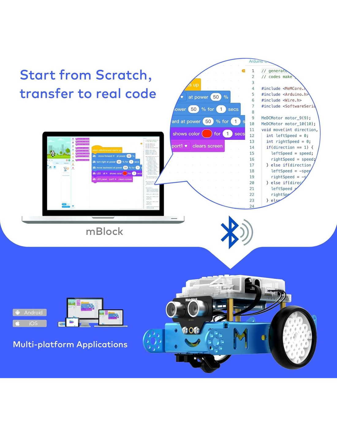 - [Robot de codificación para principiantes] Diseñado para aprender electrónica, robótica y programación de una manera simple y divertida, mBot es un excelente juguete educativo robótico. Desde cero hasta Arduino, ayuda a los niños a aprender programación paso a paso a través de software interactivo y tutoriales ricos.