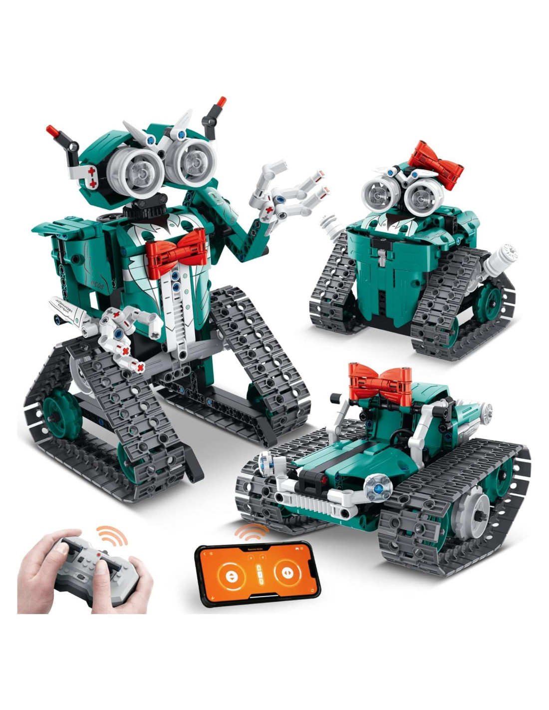 - Construye 3 en 1 Robot RC: 440 piezas para que los niños construyan un elegante robot con dedos móviles y una pajarita roja. También pueden reconstruirlo en un tanque acrobático o una robot niña con un clip de pelo de moño rojo. Perfecto para niños que aman los kits de construcción y los juguetes de robots.