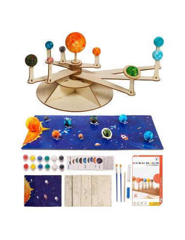- Artesanía y Aprendizaje: Todo lo que necesitas para construir el modelo de madera, pintar los planetas principales y construir el rompecabezas. Incluye El Sol, Mercurio, Tierra, Júpiter, Urano, Venus, Marte, Saturno y Neptuno. Incluye pintura y pinceles. Construye el modelo en aproximadamente 1-2 horas.