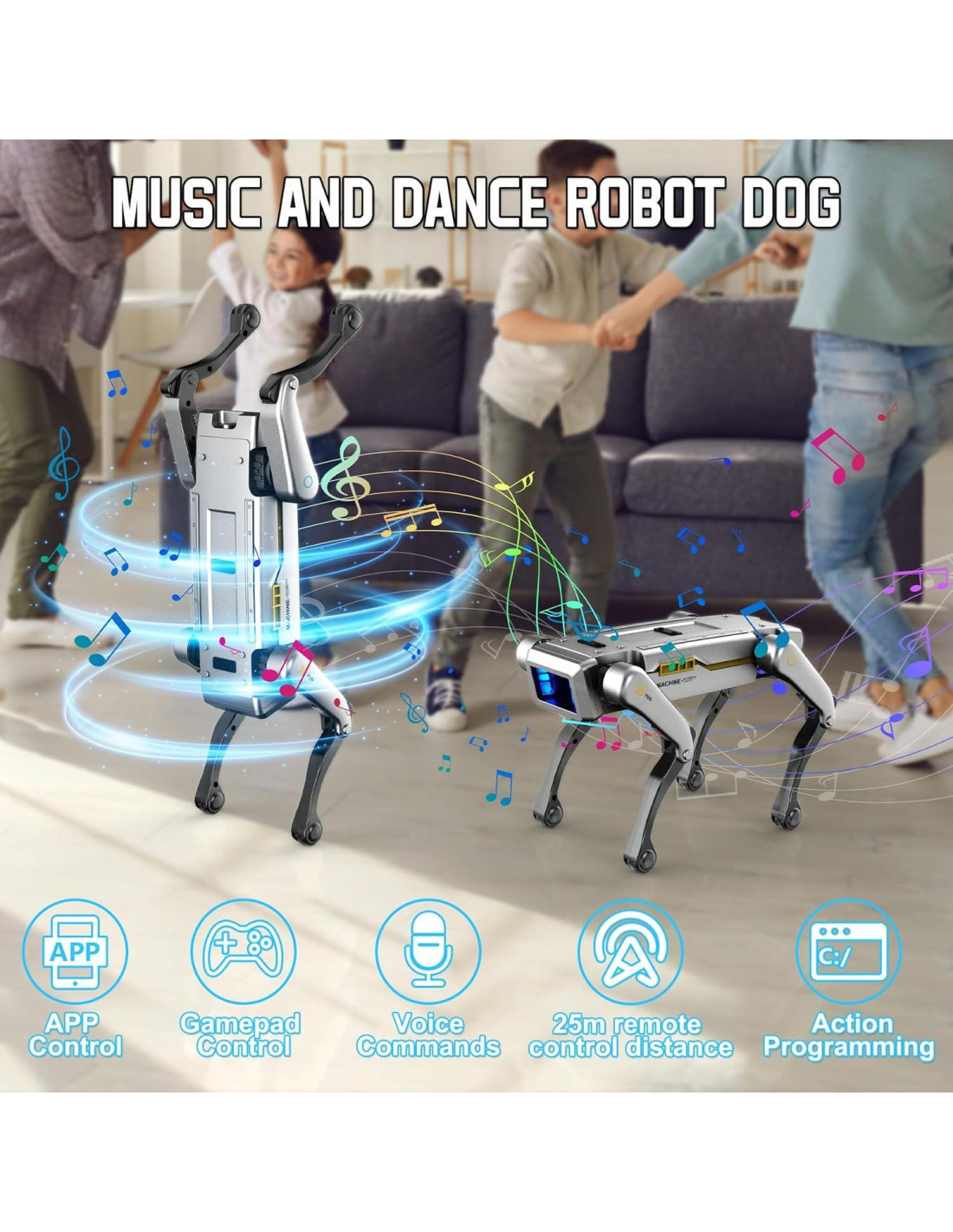 - Programación STEM y Programación Personalizada: ¡Despierta la creatividad con el modo de codificación programable! Los niños pueden crear rutinas de movimiento personalizadas a través del control remoto para un aprendizaje lógico práctico y divertido. Perfecto para juguetes robóticos educativos, perros robot programables para principiantes y regalos STEM para niños que aman la tecnología.