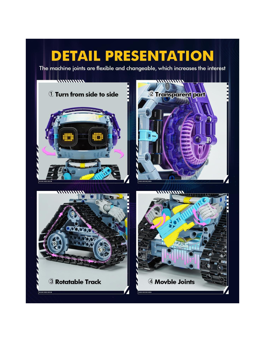 - Ojos y voz digitales expresivos: A diferencia de los juguetes robóticos tradicionales, el kit de construcción de robots actualizado tiene un panel digital LED avanzado que le permite cambiar de expresión. También produce efectos de sonido lindos y juguetones. Los niños estarán encantados con este lindo robot al interactuar con él a través del control remoto. Se siente como un verdadero compañero, haciendo que los niños se sientan cálidos y los acompañe a través de una infancia feliz.