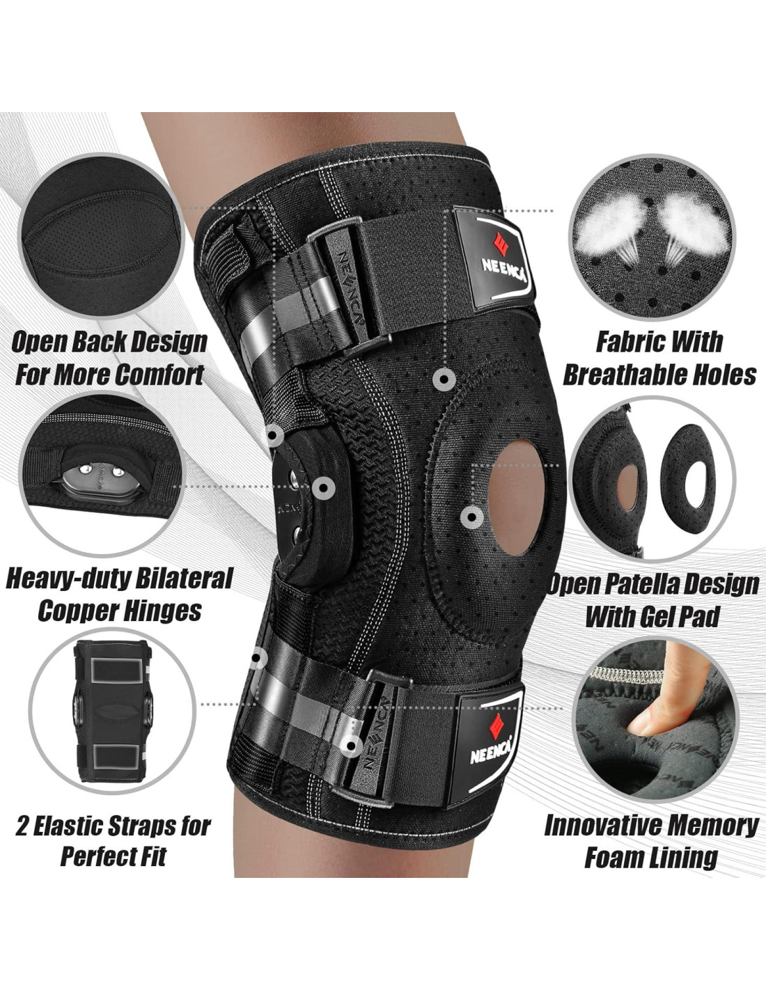 - TECNOLOGÍA DE SOPORTE DE RODILLA NEENCA - Una almohadilla de gel para la rótula contorneada anatómicamente rodea tu rótula, los estabilizadores laterales duales removibles se ajustan firmemente a tu articulación. Estos elementos funcionales especiales refuerzan el soporte lateral y mantienen la estabilidad articular, proporcionando el máximo soporte para tu articulación de la rodilla. Infusión innovadora de iones de cobre en estabilizadores de resorte de alta resistencia para ayudar a controlar tu movimiento, asistiendo efectivamente en el tratamiento de recuperación de la rodilla. Mejor opción para protección deportiva y recuperación de lesiones.