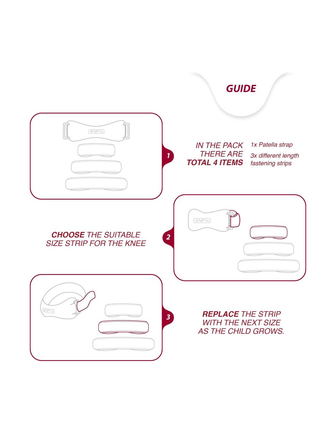 - La banda patelar viene con 3 sujetadores de correa separados y de diferentes longitudes para que su hija o hijo pueda usar el mismo soporte para la rodilla durante muchos años sin que la faja de rodilla se vuelva pequeña. Nuestro diseño innovador de faja patelar para niños también es útil para familias con muchos niños, ya que los sujetadores separados hacen que el producto sea perfecto para diferentes edades de niños, por lo que en lugar de comprar muchos soportes de rodilla de diferentes tamaños, solo tendría que obtener nuestro conjunto de banda de compresión para la rodilla y 3 sujetadores de correa.
