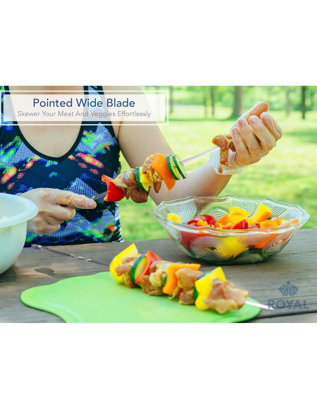 - DISEÑO ÚNICO: Los palos de metal de Royal Imports son planos y anchos, lo que evita que la comida gire al voltear. Este diseño único ayuda a que la comida se cocine de manera uniforme mientras se rota el palo en la parrilla y asegura que la comida no se deslice y cause un desorden. Está equipado con un anillo en la parte superior que te permite sostener los palos sin sobrecalentar el metal y quemarte los dedos.