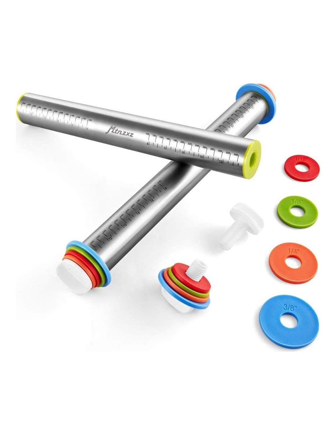 - Disfruta Hornear en Casa --- El rodillo ajustable de 43 cm de largo se puede usar para crear cualquier mezcla que puedas imaginar, como pan, dulces suaves, pizza, galletas, pastel y más, y además puedes enseñar a tus hijos a hornear en la cocina con él. Si quitas todos los anillos, se convertirá en un rodillo recto original. El rodillo de acero inoxidable es la herramienta ideal así como el compañero para hornear y cocinar.
