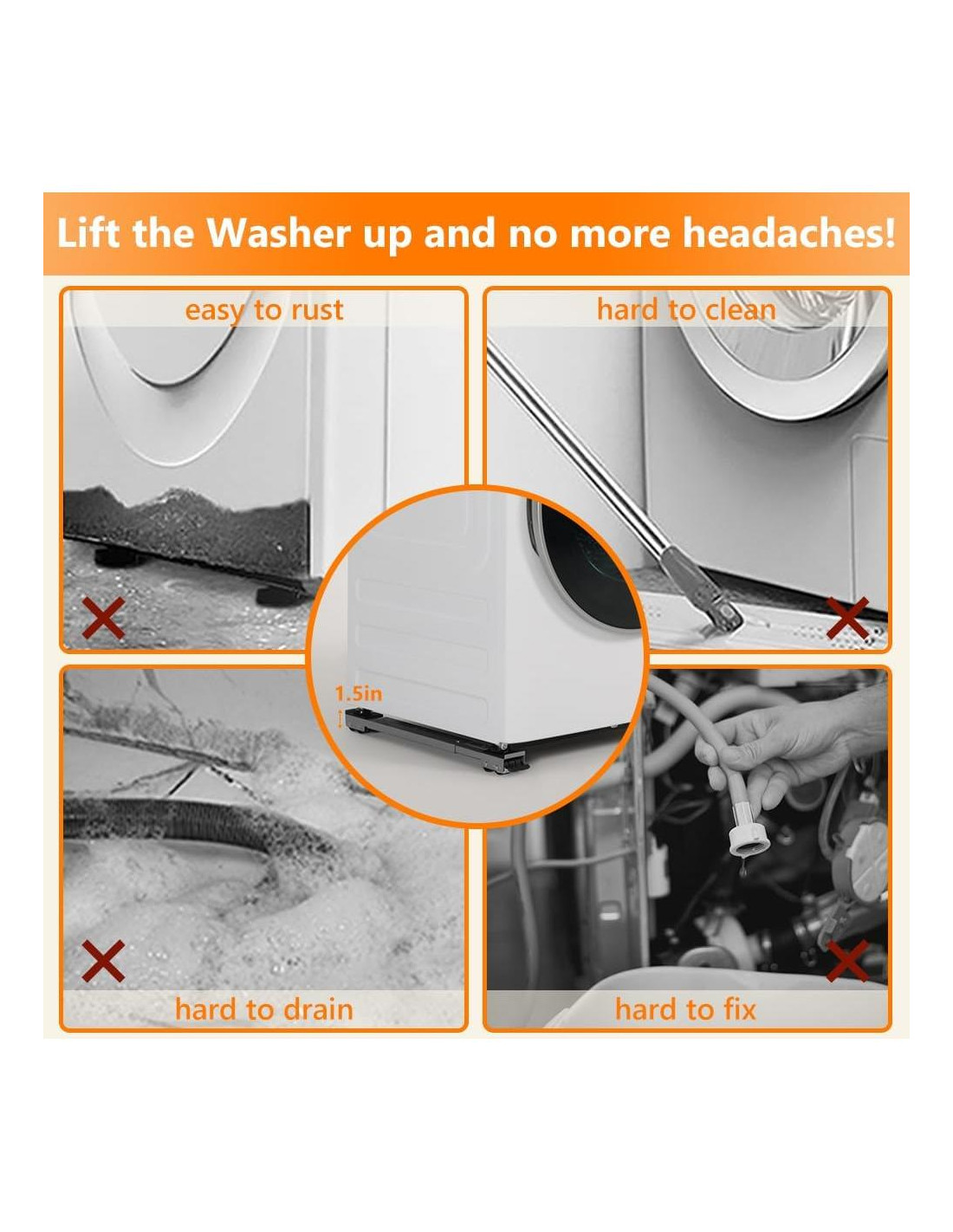 - Vida útil del electrodoméstico extendida: Los deslizadores de muebles móviles elevan tus electrodomésticos en 3.81 cm, protegiéndolos de pisos húmedos y aumentando su longevidad. Almohadillas antideslizantes de goma gruesa están reforzadas en los cuatro puntos clave de soporte. Esto proporciona una excelente absorción de impactos y reducción de ruido.
