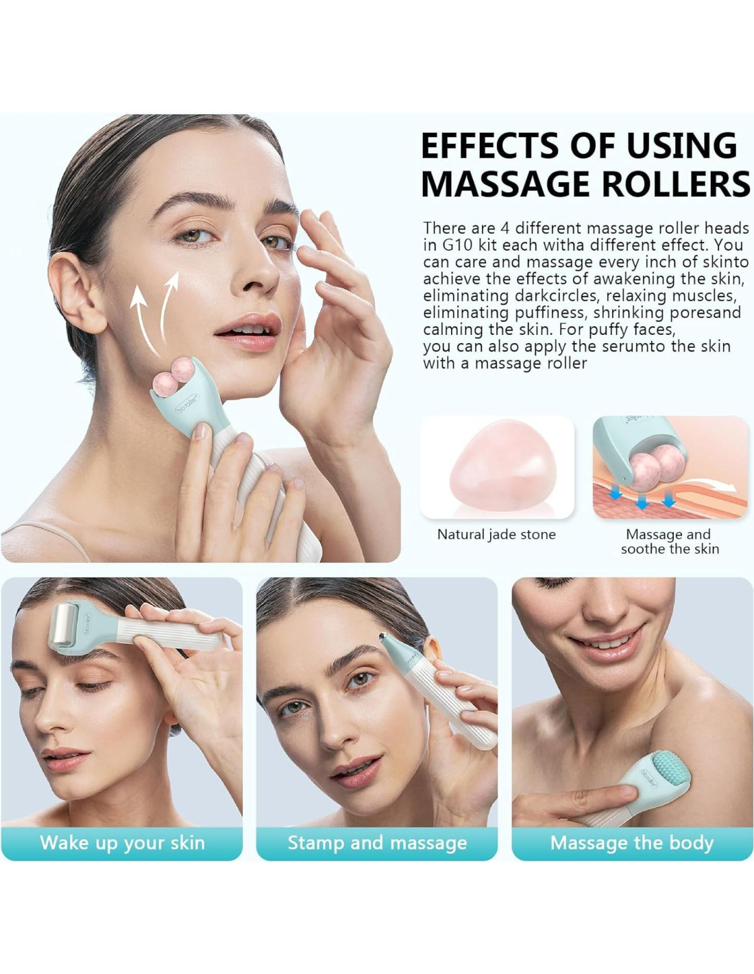 - Kit de Derma Roller 10 en 1: Kit de derma roller que incluye 9 cabezas de rodillo y un estuche de desinfección, satisface una variedad de necesidades para la cara y el cuerpo, así como para la barba y el cabello, ideal para principiantes en casa