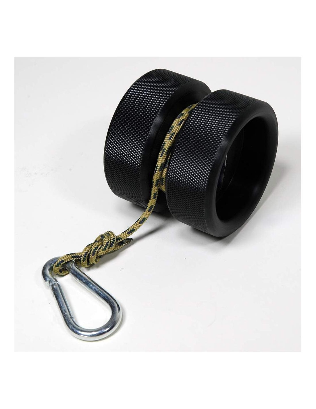 - Rodillo de polímero de 4 pulgadas (10.16 cm) de diámetro con cordón de grado de escalada de 4 pies (1.22 m) + clip