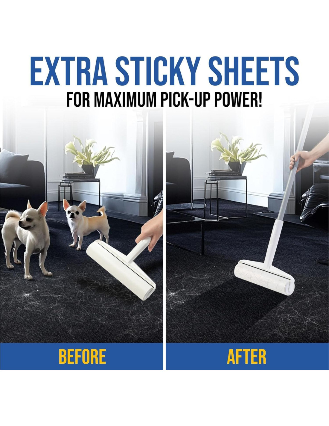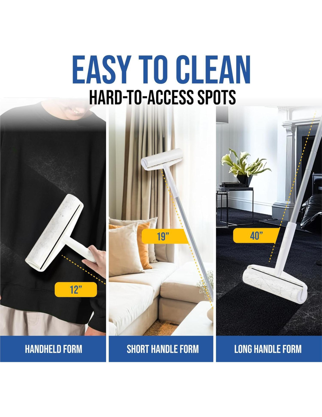 - USO MULTI-SUPERFICIE Y MULTI-OCCASIÓN - Este rodillo de pelusa gigante con mango largo es perfecto como rodillo pegajoso para sofá o cama. Funciona en muebles, alfombras y cortinas. Incluye rodillos de pelusa extra pegajosos con un palo de rodillo de pelusa y 4 recambios de rodillo pegajoso para máxima eficiencia.