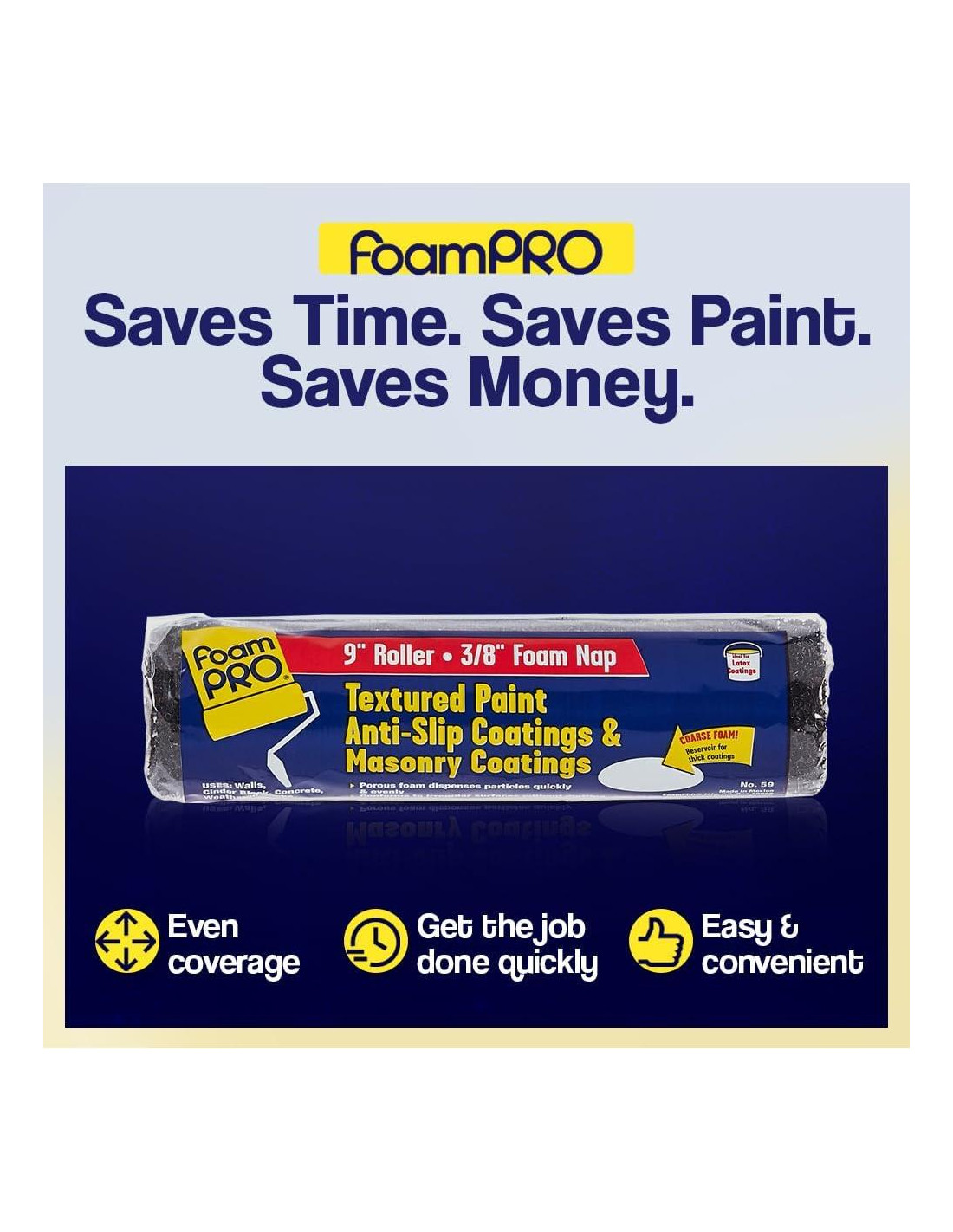 - IDEAL PARA TODAS LAS PINTURAS Diseñado para trabajar con todas las pinturas a base de látex y aceite FoamPRO 59 asegura una excelente versatilidad para cualquier proyecto. Su construcción de espuma absorbe y libera pintura de manera uniforme, minimizando goteos y desorden. Logra precisión y cobertura en la que puedes confiar, sin importar la superficie o material.