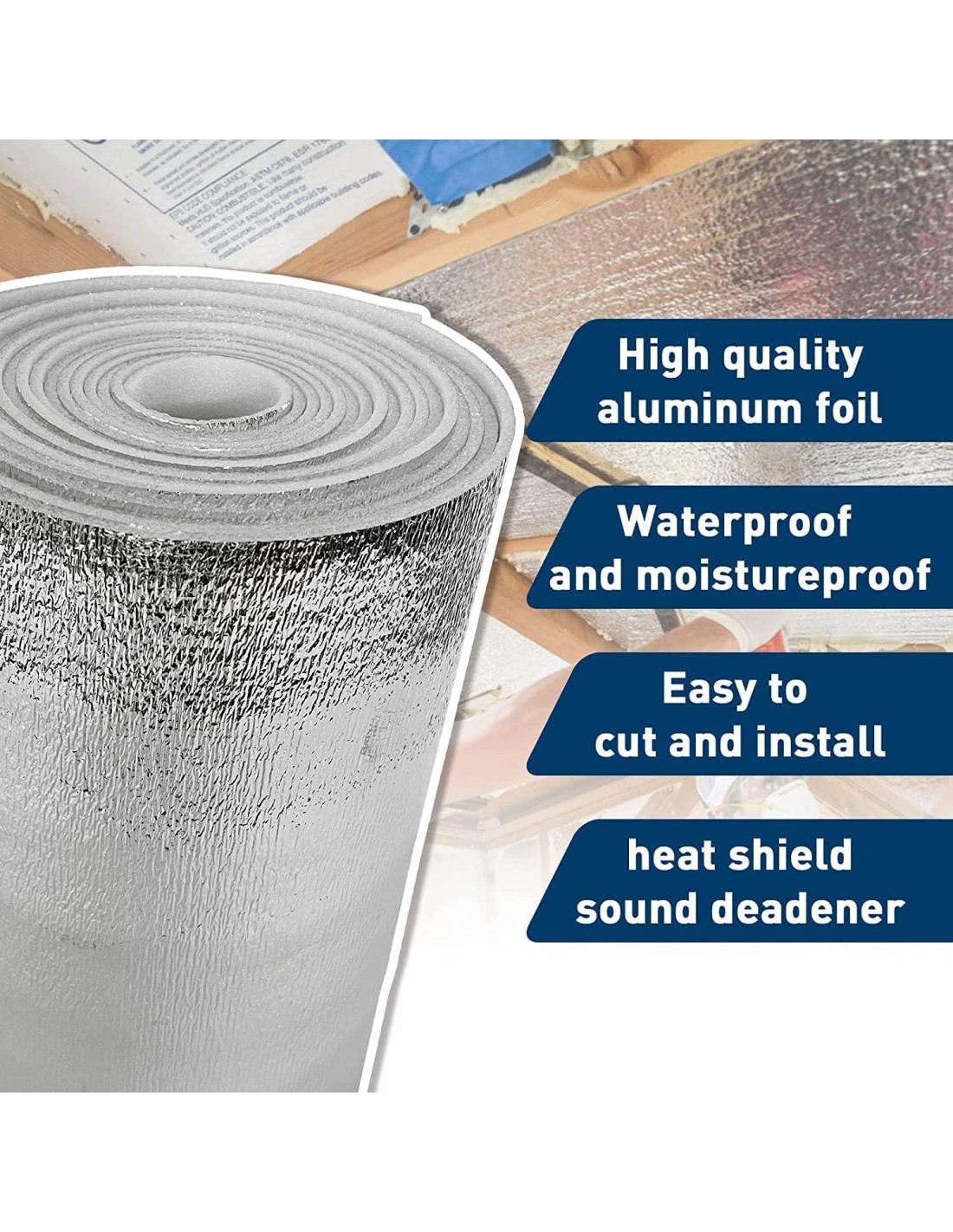 - [Calidad Premium] - Espuma de polietileno de celda cerrada de 5 mm cubierta con papel de aluminio puro. Fácil de instalar, fácil de cortar, resistente pero liviana.