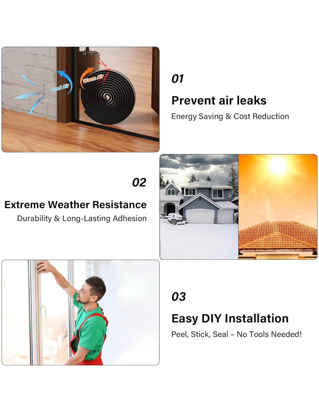 - Multifuncional para Comodidad Durante Todo el Año: Nuestra tira de aislamiento para ventanas no solo bloquea corrientes de aire, sino que también proporciona aislamiento acústico, protección contra el clima y contra el polvo. Mantiene tu hogar cálido en invierno, fresco en verano y eficiente energéticamente durante todo el año. Además, bloquea la humedad y el agua de lluvia, protegiendo paredes y muebles de daños.