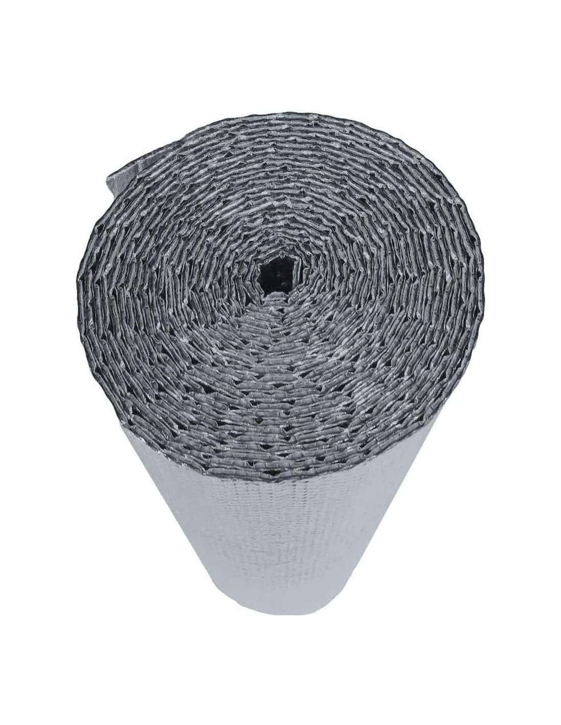 - Aislamiento de Polietileno Doble de 5 mm 1/4: Intercalado entre dos capas de barrera radiante reflectante de aluminio altamente reflectante. Material fuerte y ligero, pero duradero que es fácil de cortar e instalar y se puede grapar o clavar en cualquier superficie sin comprometer la barrera de aislamiento.