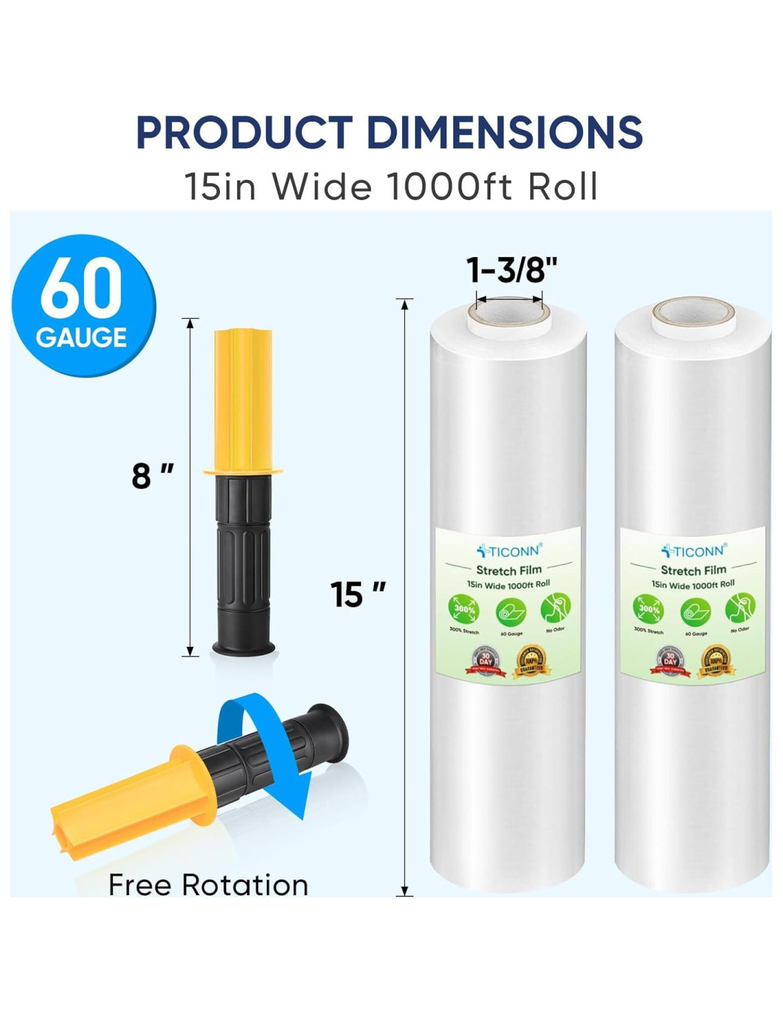 - [CALIDAD PREMIUM] Nuestro film estirable hereda la calidad superior de otros suministros de mudanza TICONN. El film plástico está hecho de material industrial de grosor sin olor.