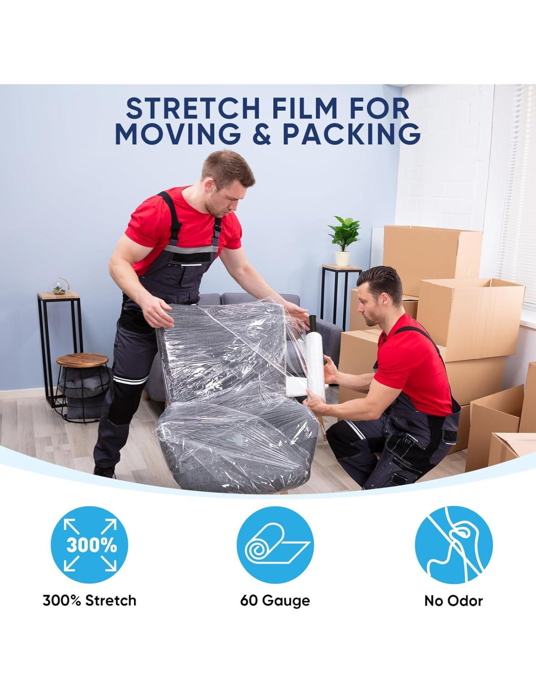- [AMPLIA APLICACIÓN] Nuestro rollo de film plástico para mudanza es perfecto para propietarios de viviendas y pequeños propietarios de tiendas. Puede envolver cajas de mudanza, televisores, cubrir muebles para proteger su superficie, envolver equipaje de viaje y envolver palets. Puede encontrar mucho más uso más allá de estos. Los rollos de film estirable son suministros de embalaje esenciales para mudanza.
