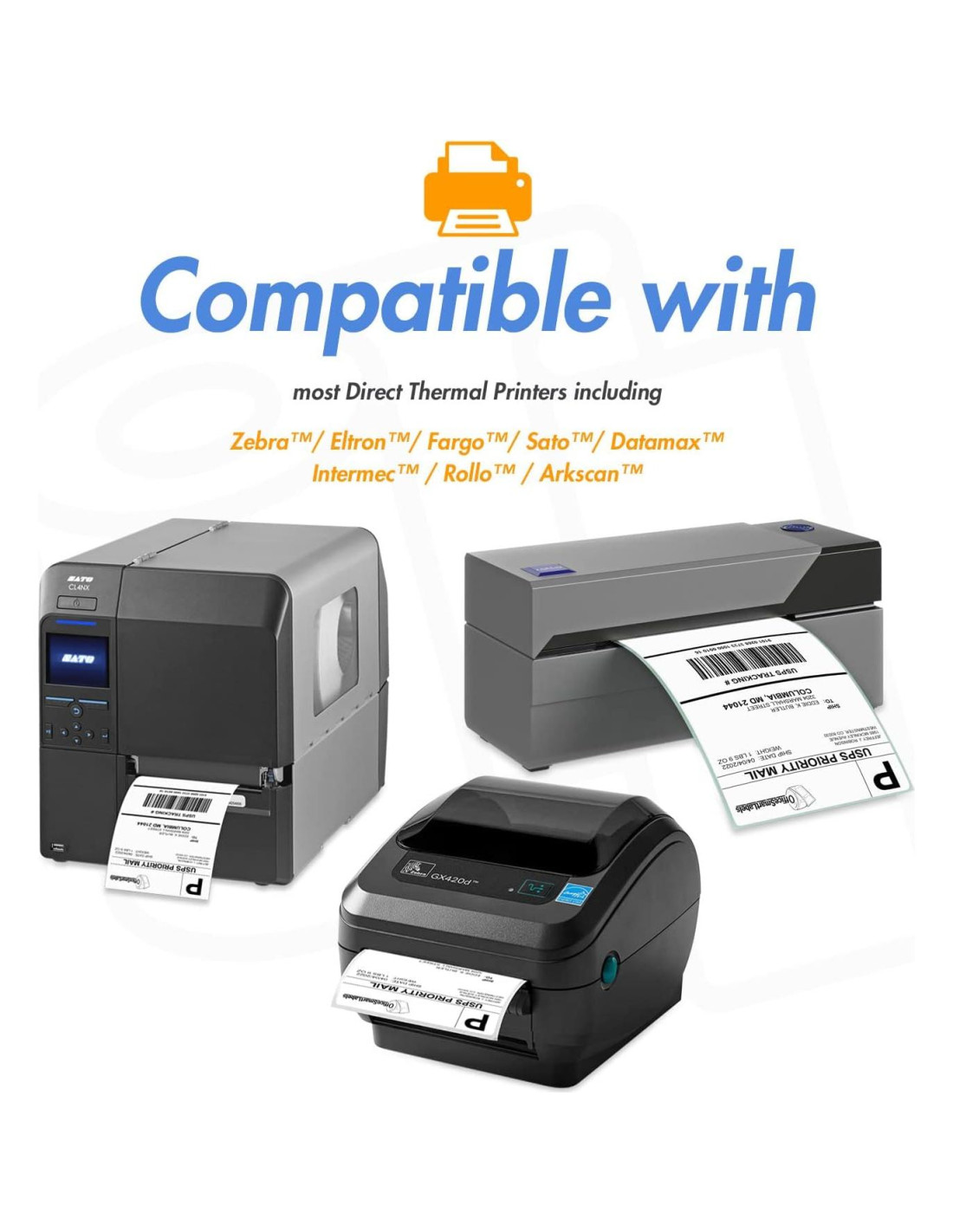- [AMPLIA COMPATIBILIDAD]: Compatible con Impresoras de Escritorio ROLLO y ZEBRA | Eltron | Fargo | Sato | Datamax | Intermec | Arkscan | TSC | WASP y la mayoría de las Impresoras Térmicas con función de ancho ajustable - *NO Compatible con impresoras DYMO y Brother