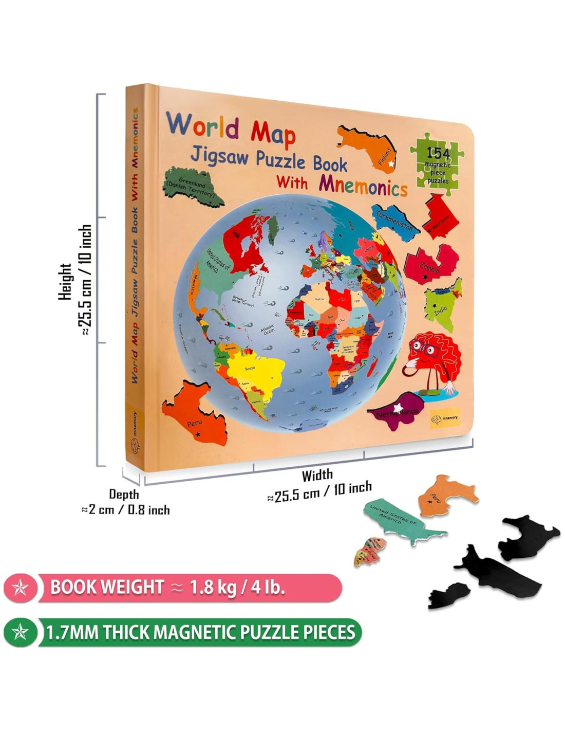 La chispa para MNEMORY se encendió a partir de la realización de que los beneficios de la mnemotecnia en el aprendizaje no son tan conocidos o enseñados como deberían, iniciando el viaje de una simple idea: hacer que aprender los países y capitales del mundo no solo sea educativo, sino también increíblemente divertido y fácil de memorizar. Estamos abordando la lucha de la memorización. Al difundir el conocimiento de estas estrategias que mejoran la memoria, empoderamos a los niños para sobresalir en diversas materias, transformando la experiencia de aprendizaje en un viaje atractivo y efectivo. Las piezas encajan en su lugar, asegurando un ajuste seguro y previniendo pérdidas. Las piezas están diseñadas para representar un país o un grupo de países. Ideal para aprender en movimiento. Las mnemotecnias son técnicas divertidas para aprender más rápido y recordar más. Frases peculiares para vincular países y capitales para un aprendizaje y retención fáciles. Las mnemotecnias mejoran la retención de memoria para mejores resultados de aprendizaje. Las técnicas en nuestro libro no se limitan a la geografía; son herramientas versátiles que proporcionan a los niños estrategias de mejora de memoria en diversas materias. Todos los continentes en un libro compacto. Los tableros de rompecabezas en forma de continentes mejoran el aprendizaje práctico y la conciencia espacial. Facilita el almacenamiento y el viaje. Un regalo que combina diversión con aprendizaje. Proporciona horas de juego, siendo perfecto para mantener a los niños entretenidos. Desde niños pequeños aprendiendo su primera geografía hasta adultos perfeccionando sus habilidades de memoria. Una opción de regalo única y significativa para cumpleaños, festividades o cualquier ocasión especial, creando recuerdos duraderos.