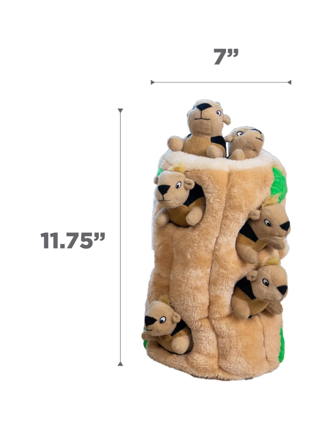 - El puzzle de perro Esconde A Ardilla mantiene a los cachorros comprometidos mientras cazan ardillas chirriantes del tronco del árbol, alimentando sus instintos y diversión