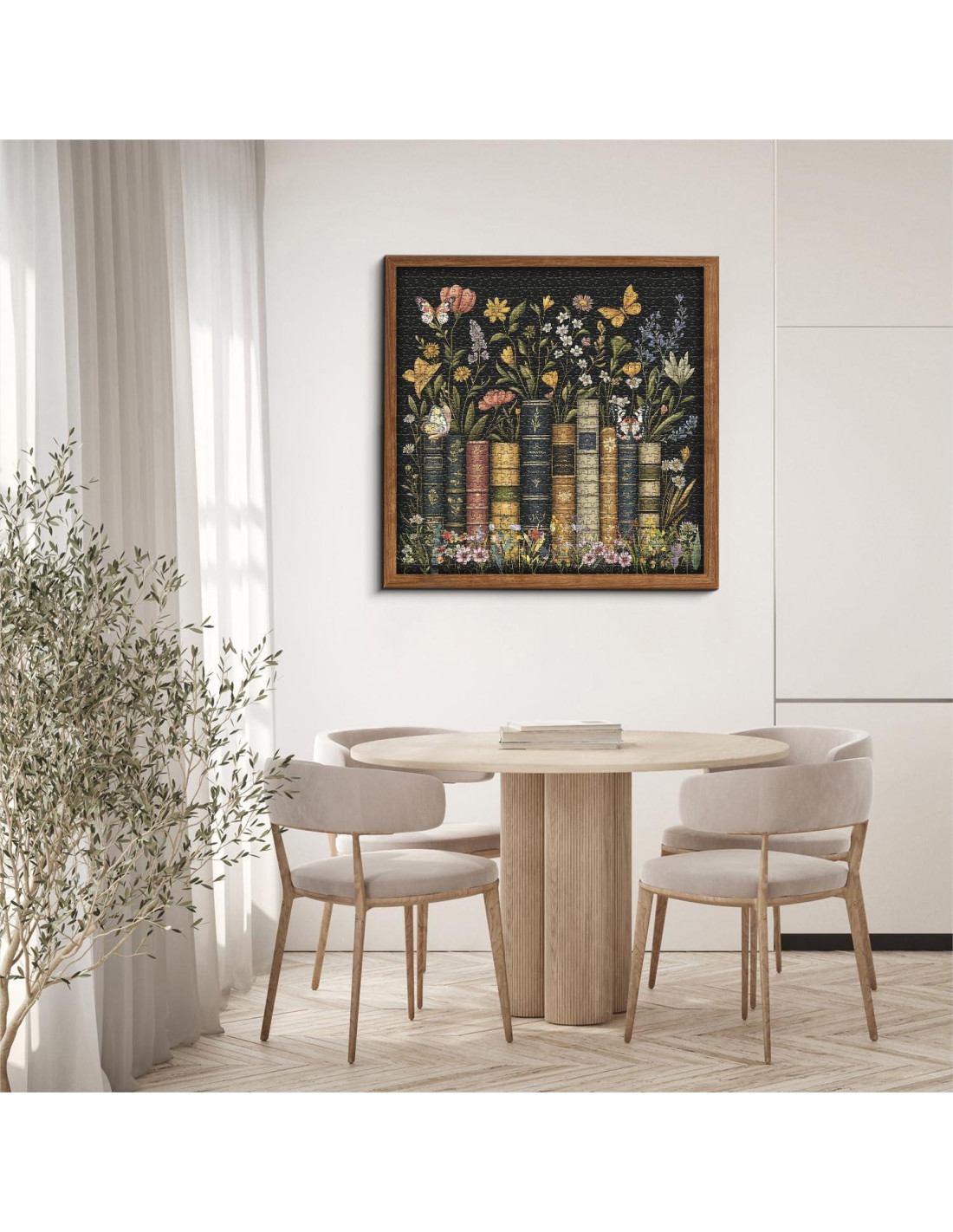 - Rompecabezas de Páginas de Flores Silvestres 1000 Piezas: Este rompecabezas presenta libros vintage entrelazados con flores silvestres en flor y mariposas, combinando naturaleza y literatura contra un fondo oscuro y elegante. Una mezcla perfecta de conocimiento y belleza