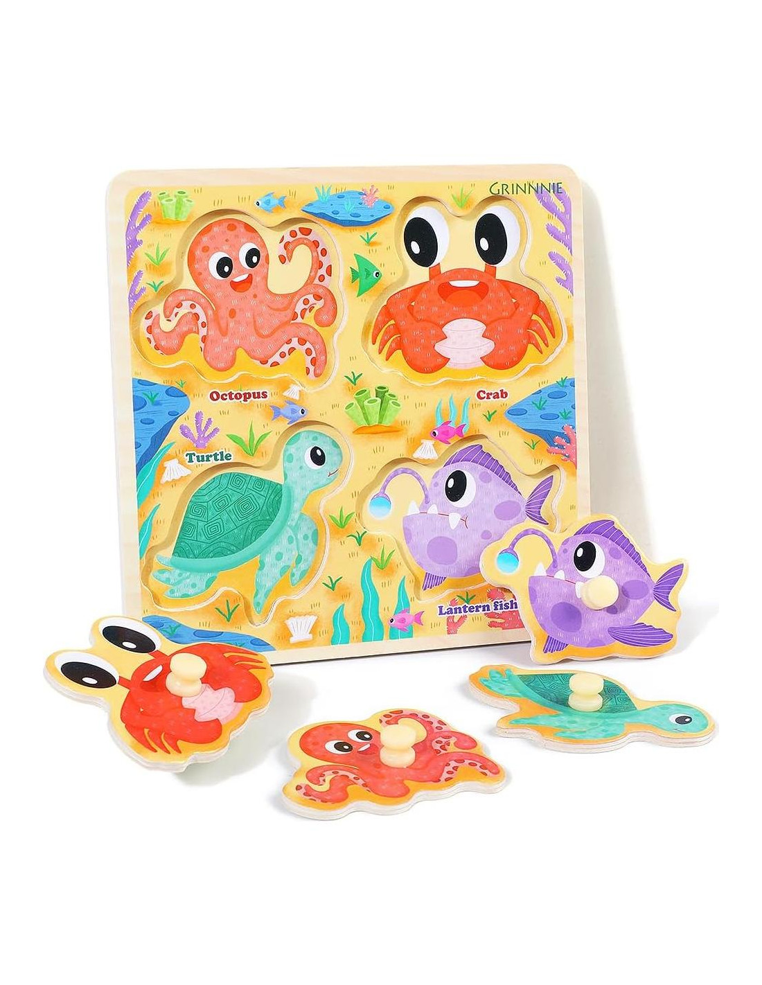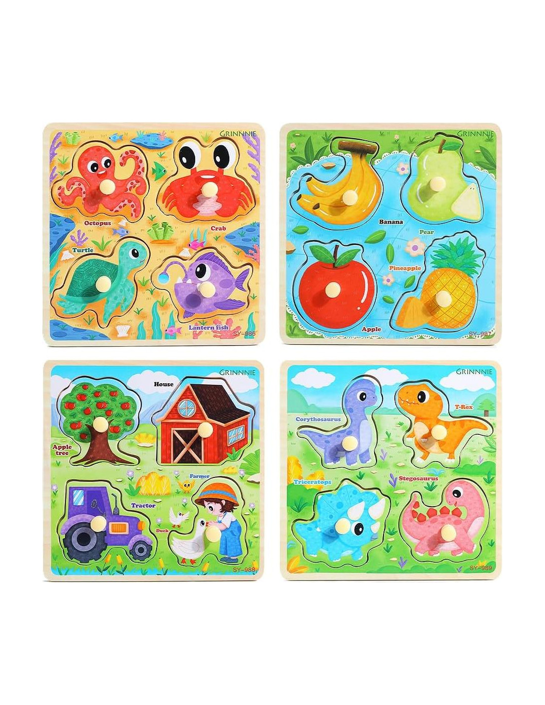 - MATERIAL NATURAL: GRINNNIE es una empresa especializada en la producción y diseño de rompecabezas para niños. Todos los materiales del rompecabezas están hechos de madera natural y son no tóxicos y sin olor. Las pegatinas y la pintura en el rompecabezas están hechas de pintura a base de agua no tóxica y tecnología de impresión por transferencia térmica, lo que es muy seguro para los niños.