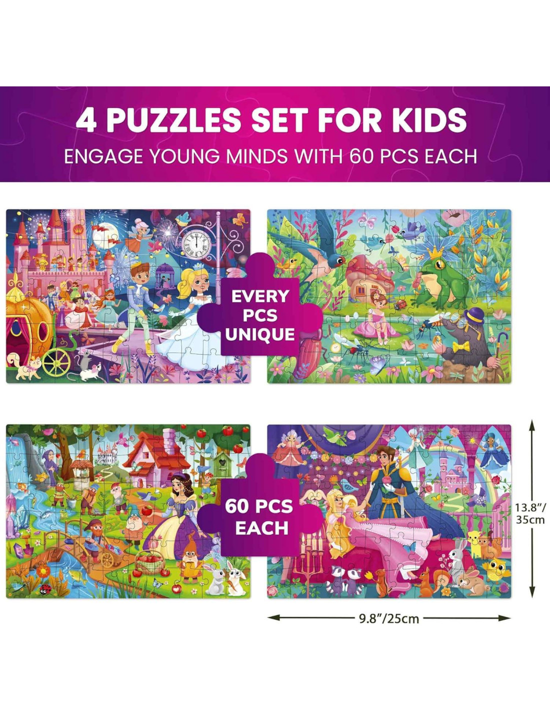 - PAQUETE DE 4 PUZZLES PARA NIÑOS: el set incluye cuatro puzzles de cuentos de hadas bellamente ilustrados para niños de 5 a 8 años; cada puzzle contiene 60 piezas con diseños brillantes y atractivos; perfecto para juego independiente, tiempo en familia o actividades educativas en casa o en la escuela