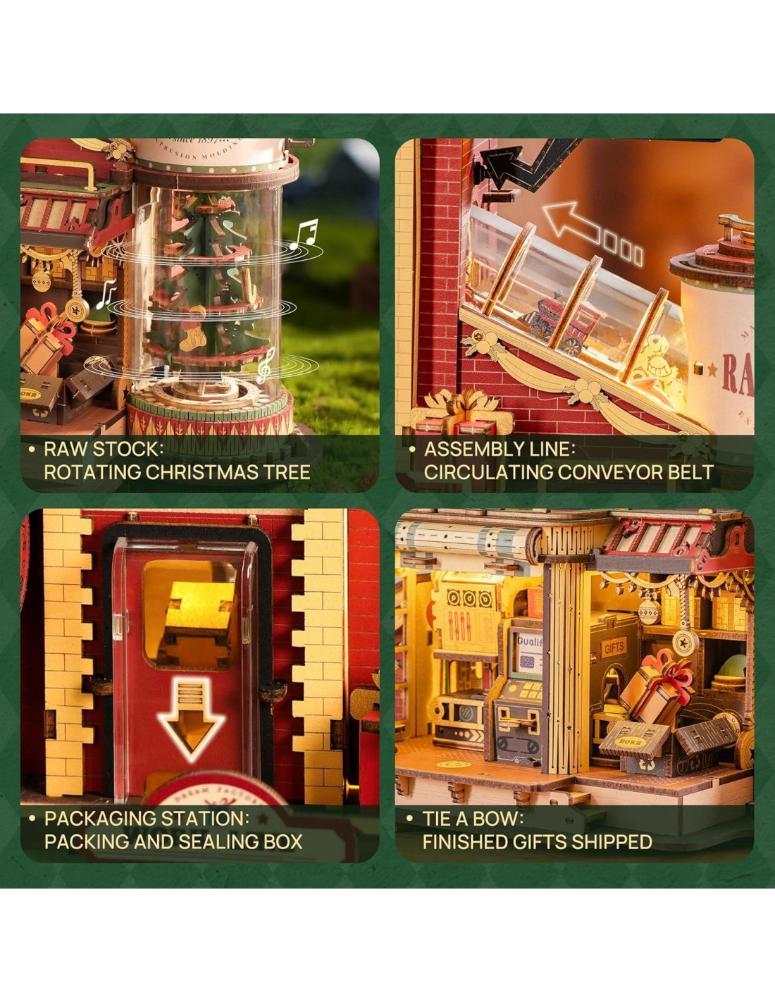 - [Desafiante pero Gratificante de Ensamblar] Hay un total de 449 piezas, y el ensamblaje toma aproximadamente 12 horas. El tamaño ensamblado es 24.4 x 16.3 x 25.6 cm. Este kit de modelo de madera para adultos contiene todo lo que necesitas para construir una fábrica de regalos, un bullicioso hogar de juguetes que entrega los queridos regalos navideños a todos. Sigue las instrucciones de ensamblaje ilustradas en inglés para comenzar.