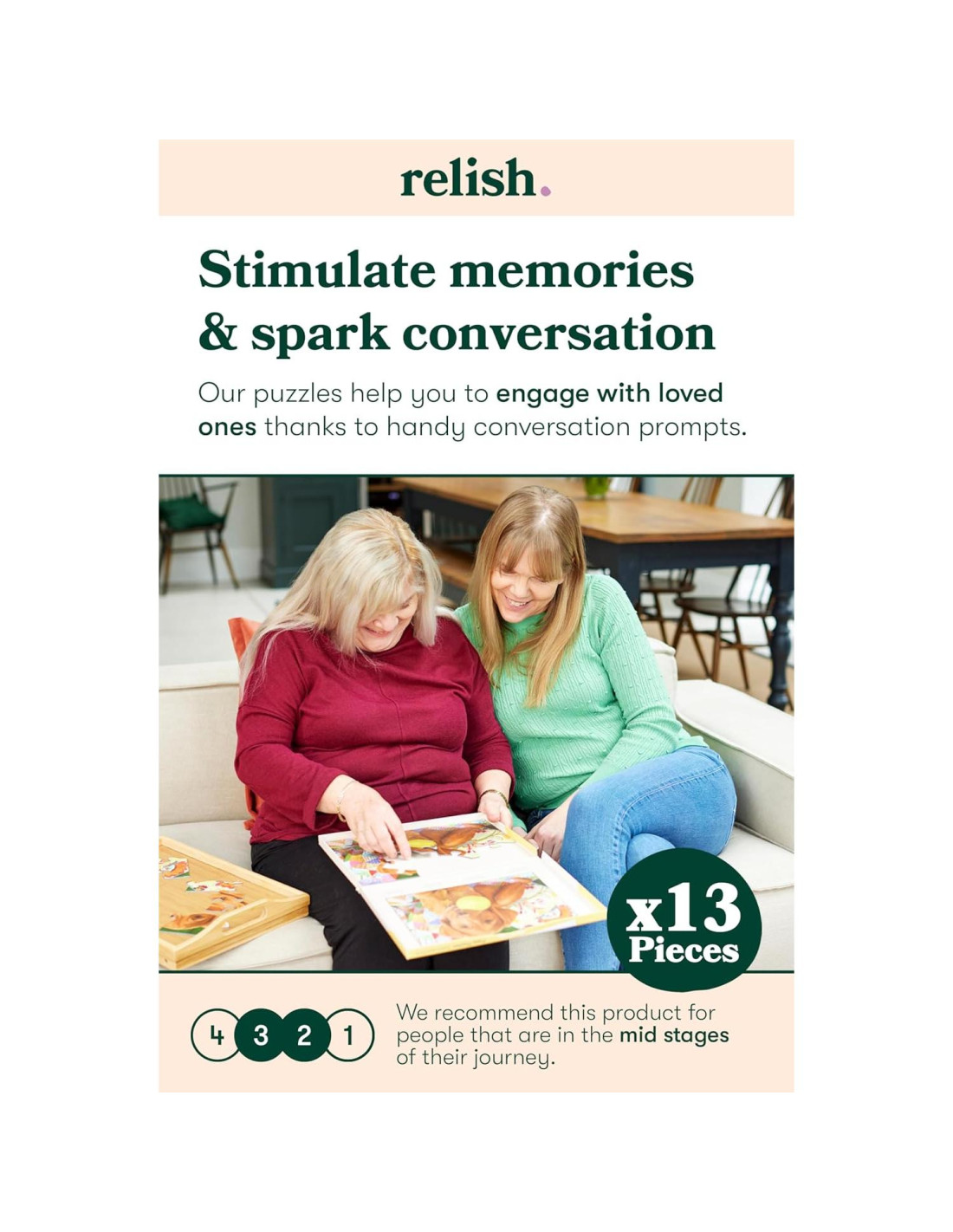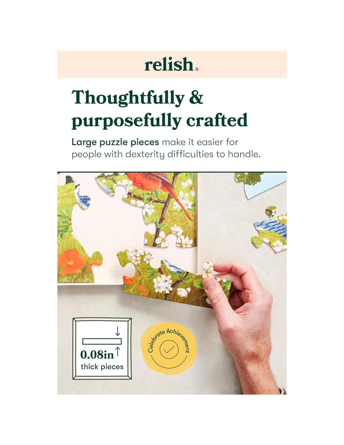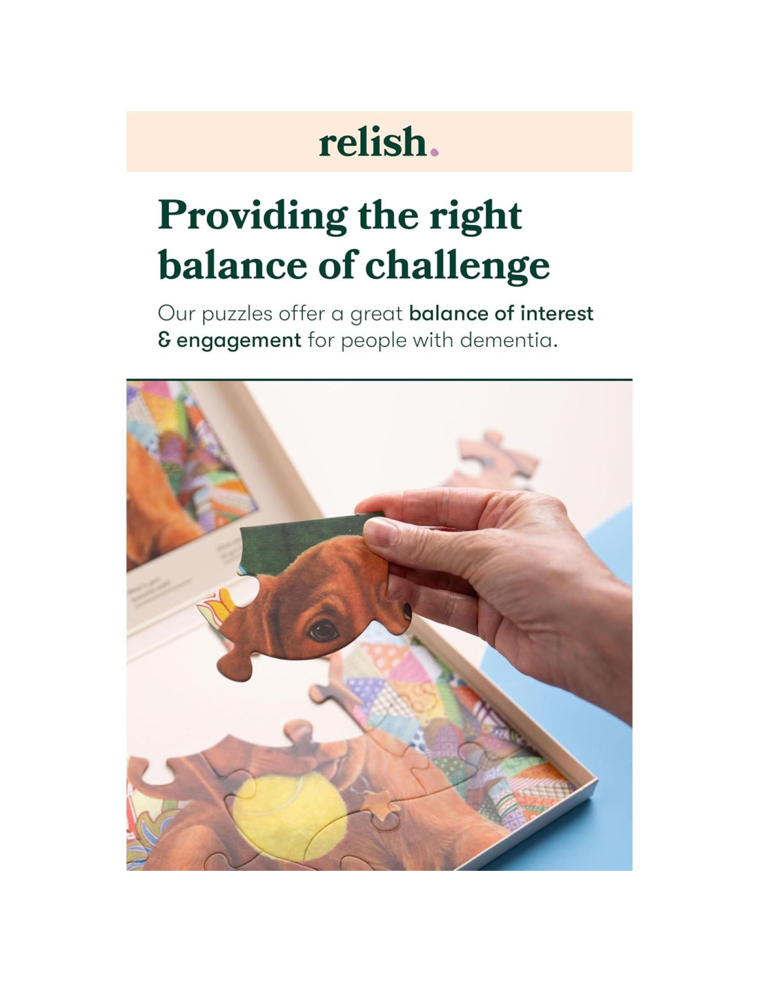 - AMIGABLE CON LA DEMENCIA - Los rompecabezas de piezas grandes de Relish han sido diseñados específicamente para proporcionar el equilibrio justo de desafío, interés y compromiso para cualquier persona, desde ancianos, personas mayores, personas con discapacidad visual y personas con demencia y Alzheimer.