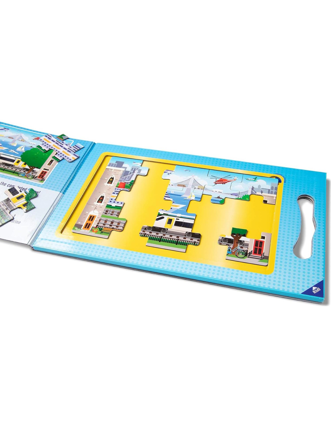 ¡Nunca ha sido tan fácil divertirse con rompecabezas en cualquier lugar y en cualquier momento! Este juego portátil incluye dos rompecabezas magnéticos de 15 piezas con emocionantes escenas de vehículos en un formato compacto que se despliega y con un asa de transporte incorporada. Las piezas están codificadas por forma en la parte posterior para facilitar la clasificación y se adhieren a las superficies internas para minimizar el desorden, lo que lo convierte en una actividad de viaje excelente para niños de tres años en adelante. El conjunto incluye actividades de búsqueda y encuentro como un desafío adicional una vez que se completan los rompecabezas. Jugar con rompecabezas es una excelente manera de fomentar el pensamiento lógico, el establecimiento de metas y la paciencia.