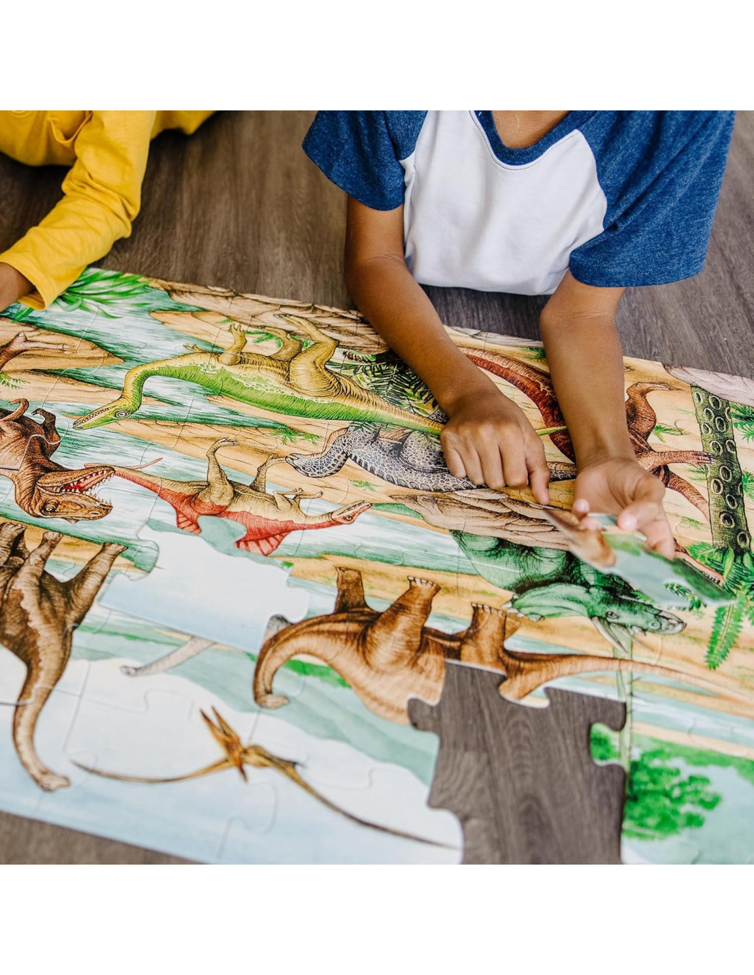 Descripción del Producto La emoción y el interés de los niños por los dinosaurios nunca desaparecerán. Este rompecabezas de piso gigante de Dinosaurios presenta una hermosa obra de arte original que representa una escena de tiempos prehistóricos. Incluye imágenes de los dinosaurios favoritos de los niños, incluyendo un espinoso estegosaurio, un pterodáctilo volador y un poderoso T-Rex. El rompecabezas de piso mide impresionantes tres pies x dos pies cuando está ensamblado, y las 48 piezas de cartón extra grueso cuentan con una superficie fácil de limpiar para mantener este emocionante rompecabezas de piso como nuevo. Jugar con rompecabezas es una excelente manera para que los niños exploren su creatividad mientras desarrollan sus habilidades cognitivas, físicas y emocionales. Cuando los niños trabajan en rompecabezas, están afinando sus habilidades motoras gruesas, mejorando su coordinación mano-ojo, fortaleciendo sus habilidades para resolver problemas y comenzando a desarrollar procesos de lógica y pensamiento crítico. Este Rompecabezas de Piso de Dinosaurios de Melissa & Doug es un regalo excepcional para niños en edad preescolar y niños de tres años en adelante para un juego práctico y sin pantallas. Este producto está certificado por el Consejo de Manejo Forestal. La certificación FSC asegura que los productos provienen de bosques gestionados de manera responsable que brindan beneficios ambientales, sociales y económicos, y que los bosques están protegidos para las generaciones futuras. Tenga en cuenta que la certificación FSC se aplica solo a inventario nuevo (FSC C156584) Desde el Fabricante Desde juguetes de madera clásicos hasta manualidades, juegos de simulación y juegos, los productos de Melissa & Doug proporcionan una plataforma para encender la imaginación y un sentido de asombro en todos los niños para que puedan descubrirse a sí mismos, sus pasiones y su propósito. Desde la fundación de la empresa hace más de 25 años, Melissa & Doug ha entregado constantemente productos innovadores que inspiran un pensamiento abierto, alientan a los niños a ver nuevas posibilidades y ofrecen Incontables Maneras de Jugar. Es parte de una visión más grande para Recuperar la Infancia. Porque al dar a los niños una verdadera infancia con el espacio y la libertad para explorar su mundo, les damos un camino para realizar su máximo potencial.