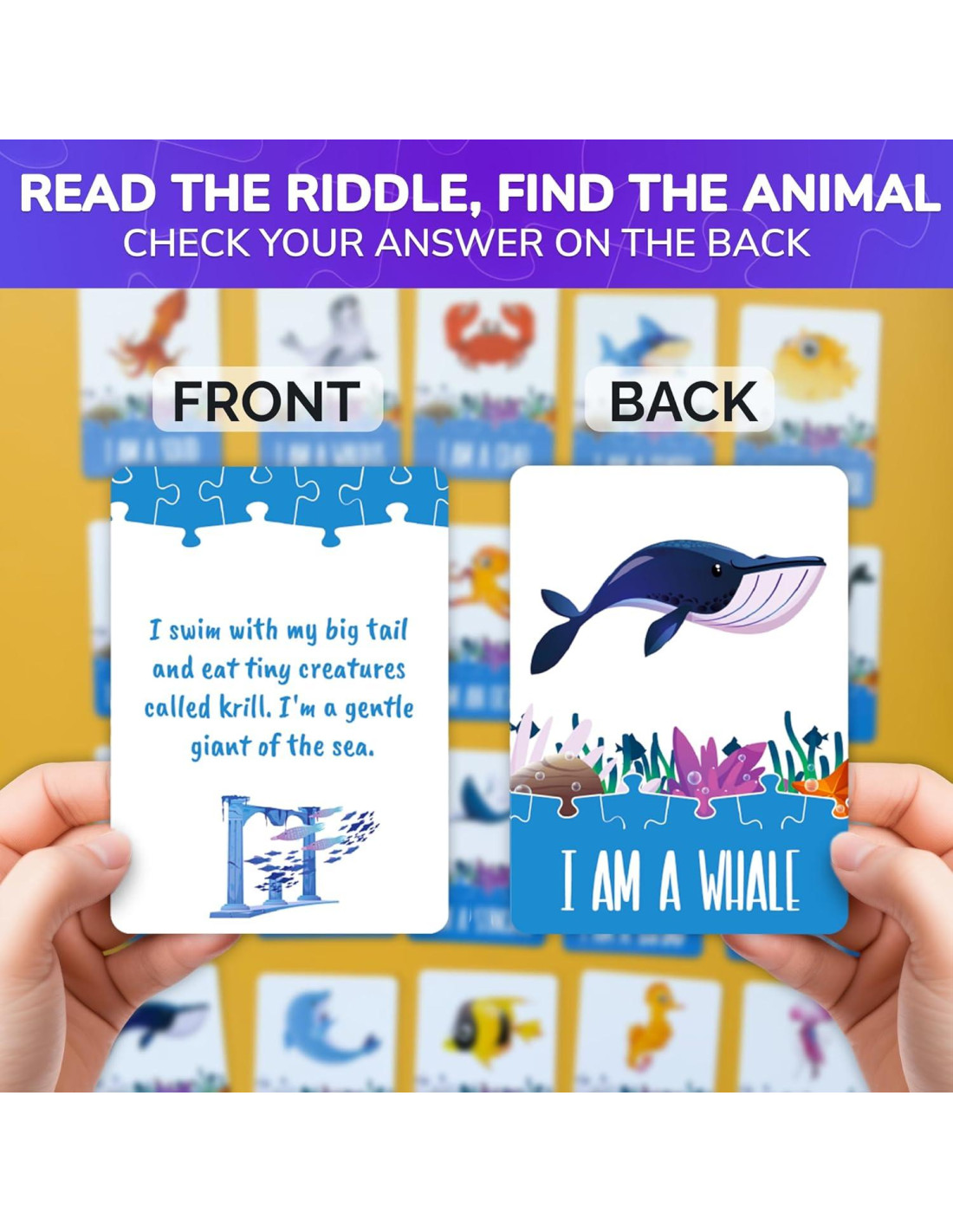 - RESOLVER ADIVINANZAS EN TARJETAS: 20 tarjetas de adivinanza con divertidas adivinanzas de animales; Los niños resuelven la adivinanza primero y luego buscan el animal correspondiente en puzzles de casi 100 piezas para niños; Esta combinación mejora las habilidades de resolución de problemas y pensamiento crítico