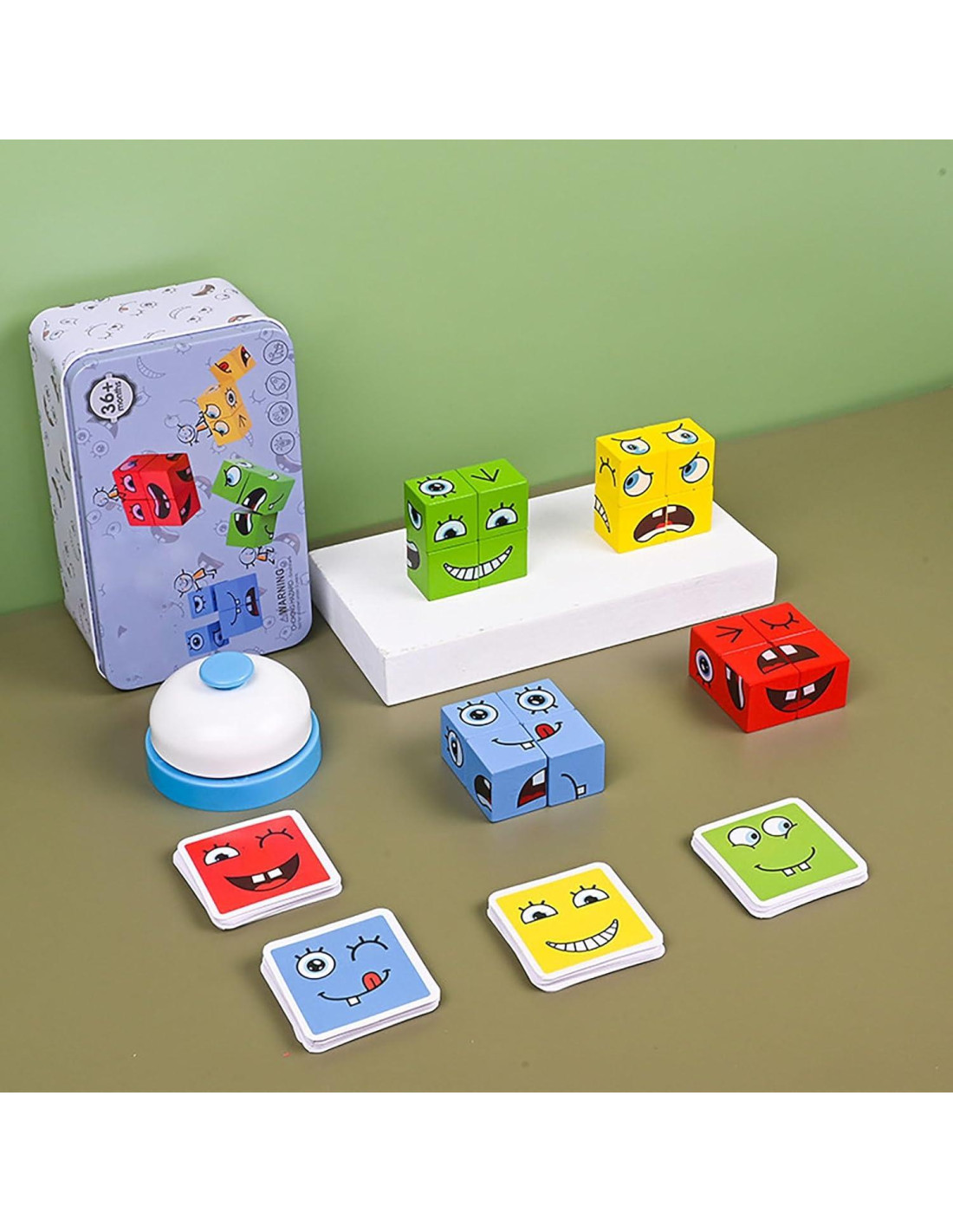 Rompecabezas de Bloques de Expresiones de Madera Juego Educativo Juguete Montessori para Preescolar, Aula de Jardín de Infantes Edades 3 Años y Más Cubos de Construcción de Cambio de Cara con Campana Favoritos de Fiesta de Navidad Regalo de Cumpleaños para Niños y Adultos, rellenos de cestas de Pascua