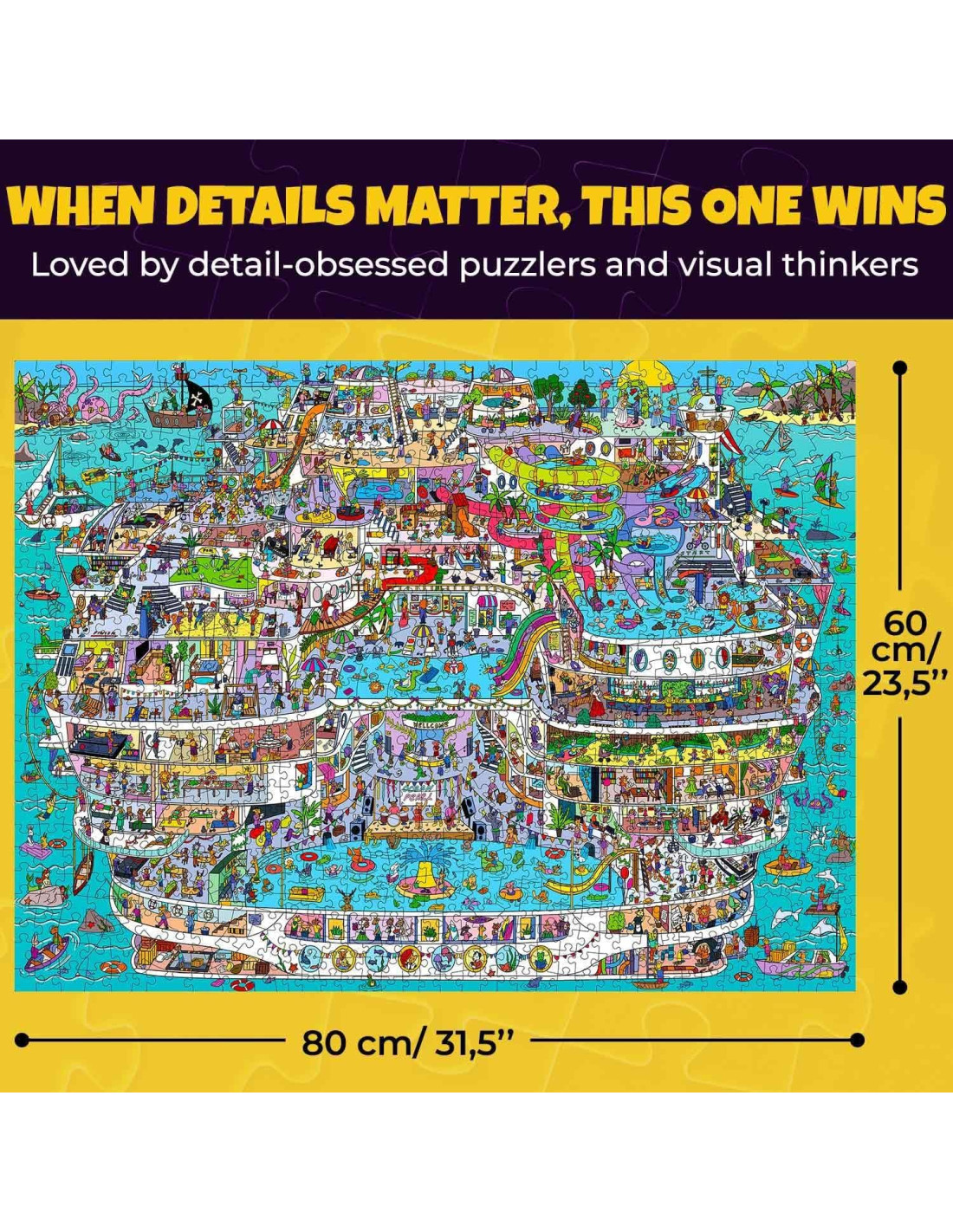 - IMPRESIONANTE PUZZLE DE 1000 PIEZAS: Cada pieza tiene una forma única sin repeticiones; presenta escenas vibrantes de animales salvajes disfrutando de la vida como humanos a bordo de un enorme crucero; lleno de detalles intrincados, personajes únicos y narración imaginativa
