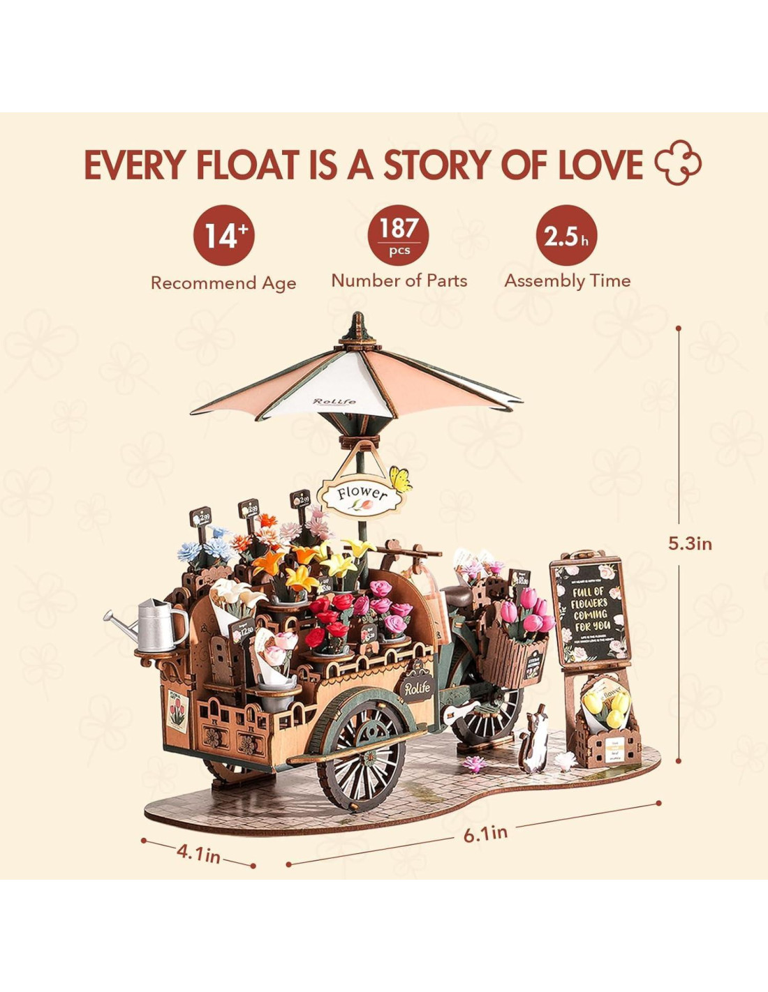 - [Carrito de Flores con Encanto Europeo] Al girar la esquina, ves un carrito desbordante de flores. Te preguntas si deberías comprar un ramo para traer la primavera a tu hogar o regalárselo a ella. Ofrecemos una experiencia de ensamblaje de rompecabezas de madera encantadora, pero las historias mágicas son tuyas para imaginar y contar.