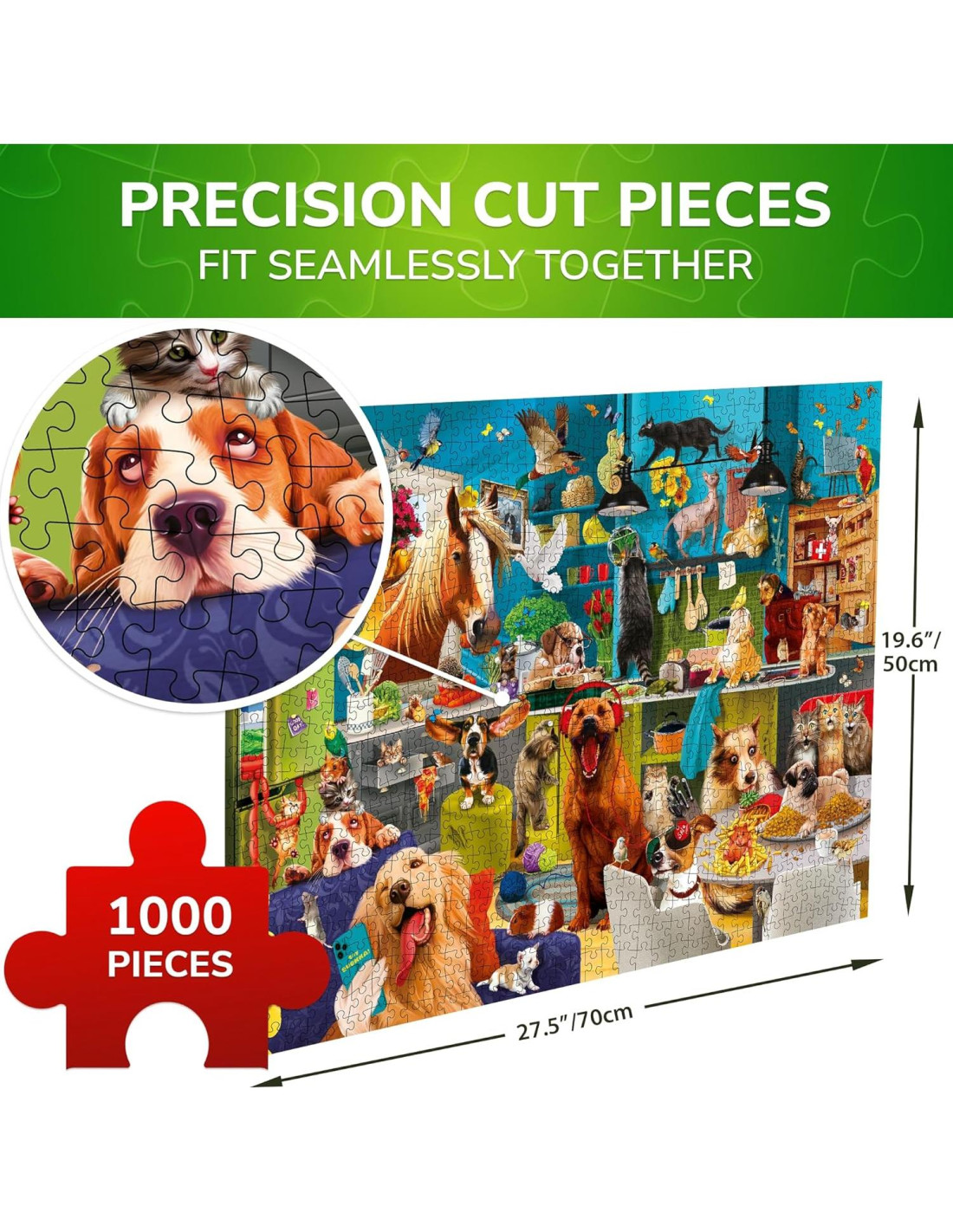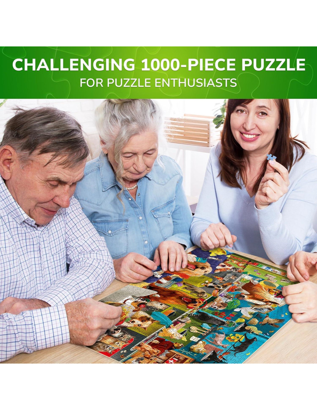 - GRANDES REGALOS PARA ADULTOS: un gran regalo para amantes de los animales y dueños de mascotas, ya que los rompecabezas de 1000 piezas muestran animales salvajes y mascotas traviesas en situaciones divertidas: perros, gatos, caballos, pájaros, incluso un mapache ocupado con croissants frescos son los héroes de nuestros rompecabezas