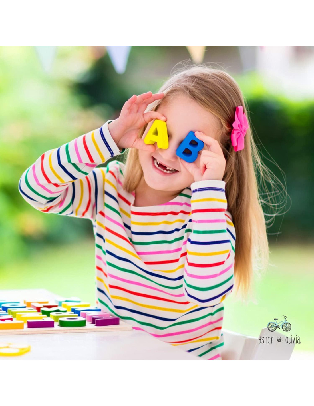 - Tamaño Ideal para Niños - Las piezas del tablero de alfabeto y las tarjetas didácticas para niños pequeños están diseñadas con el tamaño y grosor perfectos para ser fácilmente agarradas por manos pequeñas; Nuestras tarjetas didácticas para preescolar y el conjunto de rompecabezas proporcionarán la base para aprender letras, formación de palabras, habilidades de vocabulario temprano, ortografía, aprendizaje de colores para niños pequeños, conteo, reconocimiento de letras para preescolares y asociación entre palabras y objetos.
