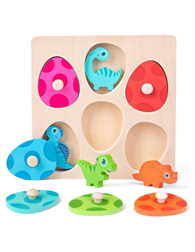 - Diseño Único: Este juguete rompecabezas de madera contiene 6 dinosaurios con diferentes patrones de colores, 6 huevos de dinosaurio con diferentes colores y una base de madera. Los juguetes Montessori clasificados ofrecen una variedad de opciones de juego. Mejora tus habilidades de clasificación.