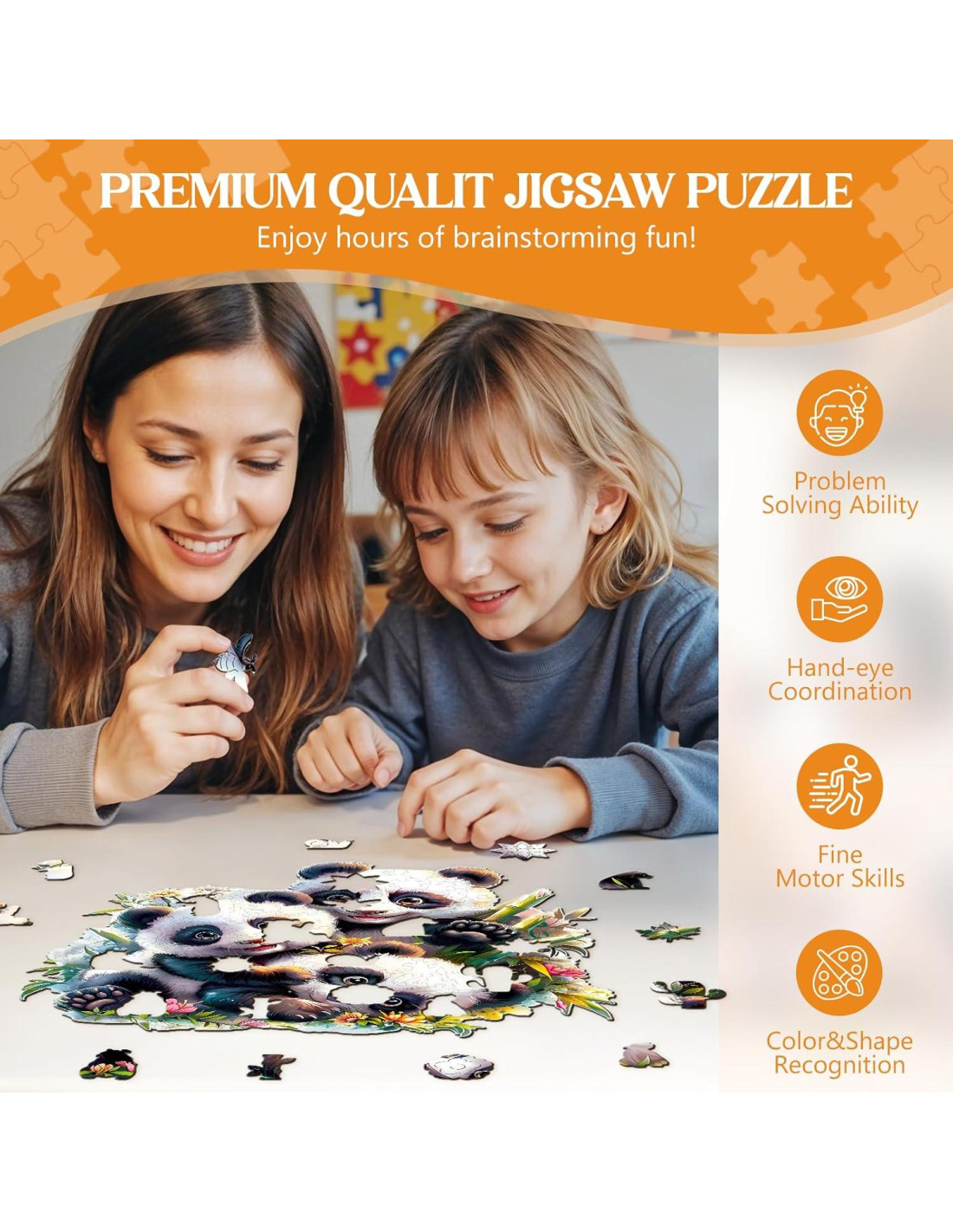 - [Rompecabezas de Madera para Adultos y Niños] - Este rompecabezas en forma de familia panda está hecho de madera natural de alta calidad, segura y duradera. El rompecabezas de madera es un rompecabezas colorido con imágenes claras y vibrantes que no se desvanecen con el tiempo. La tecnología avanzada de corte láser proporciona a los rompecabezas para adultos bordes muy suaves y una sensación muy cómoda, protegiendo tus manos de lesiones.