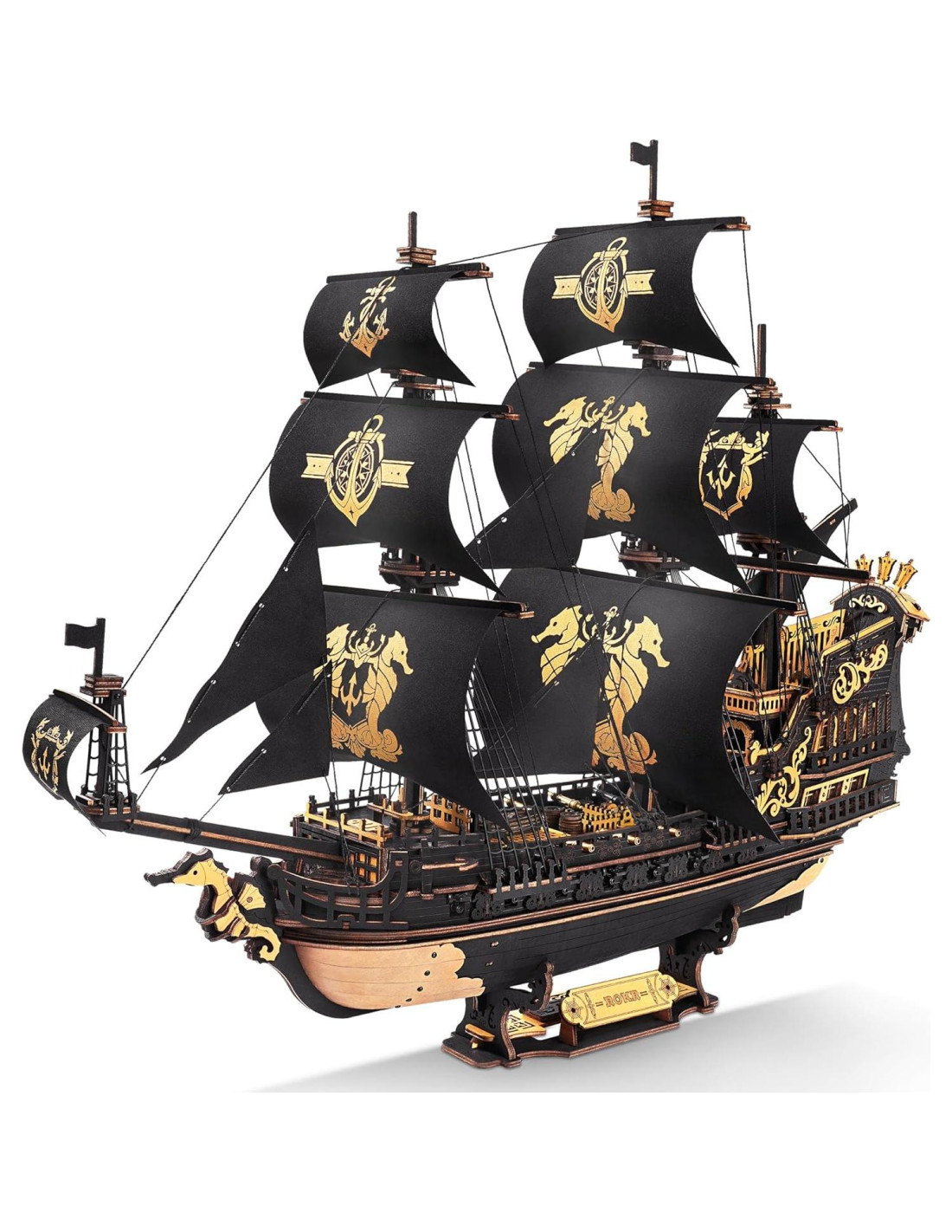 - ROKR Barco Caballito de Mar Rompecabezas de Madera 3D para Adultos - Kit de Modelo de Velero, Ensamblaje DIY de 603 Piezas, Modelo de Velero a Escala 1:100 MCB02