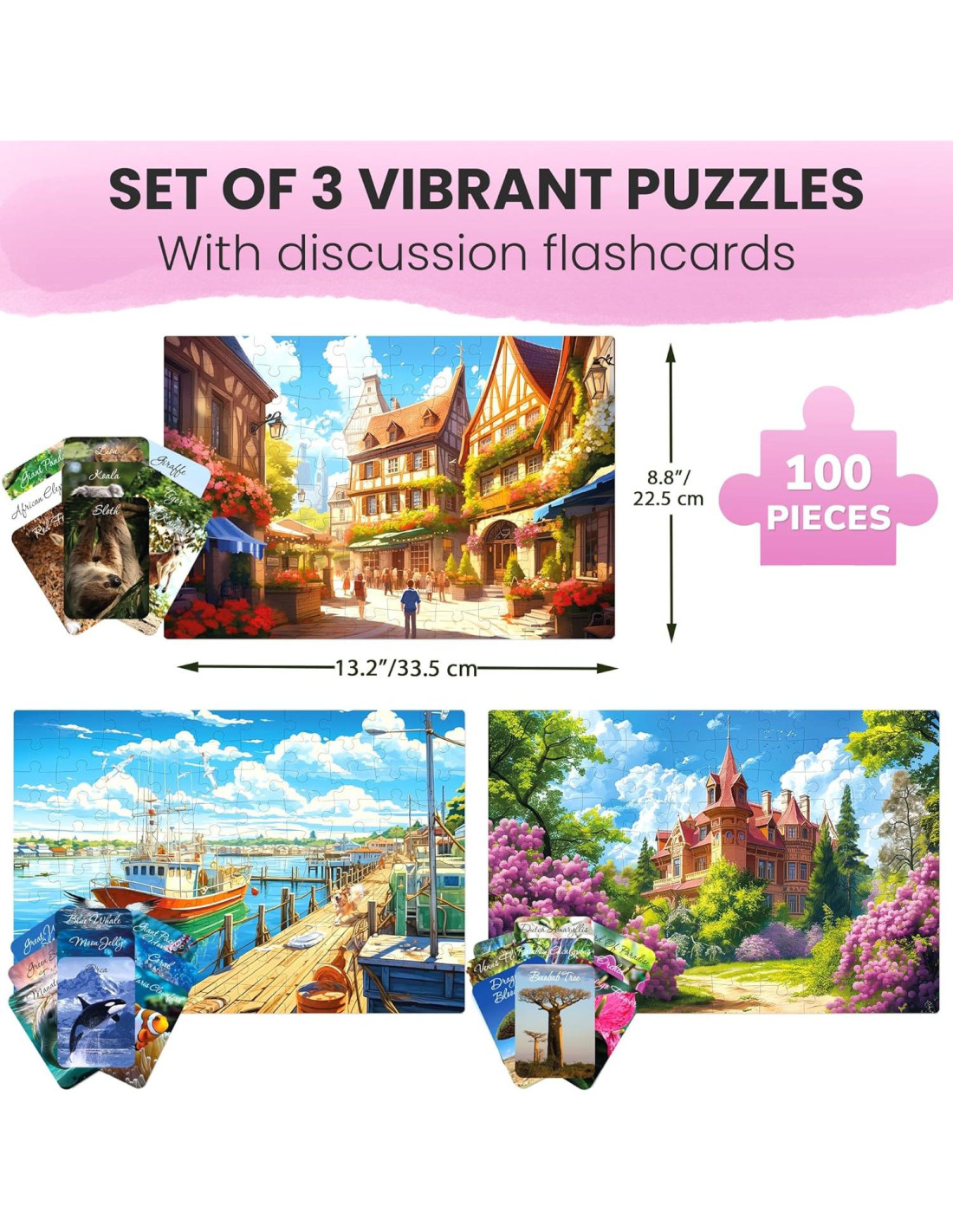 - ROMPECABEZAS DE DEMENCIA PARA ANCIANOS: nuestro conjunto para personas con demencia consiste en 3 rompecabezas coloridos con 100 piezas; estos rompecabezas miden 23 x 34 cm; los juegos de piezas grandes QUOKKA son excelentes para ancianos, mayores y adultos