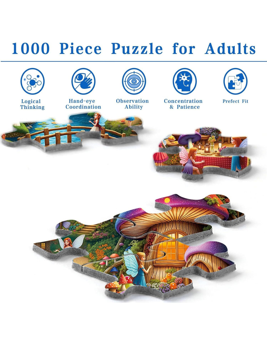 - [Lo Que Obtienes] Abre la puerta al mundo de los cuentos de hadas con nuestros rompecabezas de pueblo de hongos de elfos. Tamaño terminado: 70 cm x 50 cm. La caja es resistente y viene con un póster a color vívido 1:1. Si encuentras una pieza del rompecabezas para adultos faltante, contáctanos
