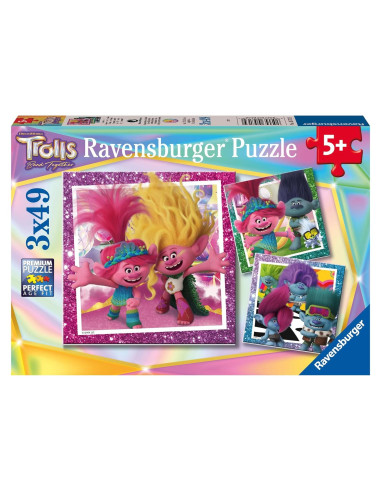 - [Acerca de este Set de Rompecabezas 3x49pc] Revela el secreto de la diversión de los rompecabezas con nuestro trío de rompecabezas "Trolls 3" y celebra la película Trolls Band Together con Poppy, Branch, amigos y familia!