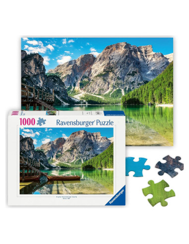 Descubre la belleza de la joya alpina de Italia con el rompecabezas de 1000 piezas Ravensburger Pragser Wildsee, Dolomitas, Tirol del Sur, Italia - una impresionante vista del lago con agua glacial, picos montañosos escarpados y botes de remos de madera flotando bajo la luz de la mañana. Este paisaje pacífico es un destino favorito para los amantes de la naturaleza y los entusiastas de los rompecabezas por igual. Diseñado para fanáticos de 12 años en adelante, este cautivador rompecabezas ofrece horas de inmersión en la unión de piezas. Elaborados con cuidado y precisión, estos rompecabezas premium están certificados por el FSC (Consejo de Administración Forestal) y están hechos con cartón extra grueso y una fina textura de lino para minimizar el deslumbramiento y mejorar la experiencia visual. La Tecnología Softclick asegura que cada pieza de forma única encaje perfectamente en su lugar, brindando una satisfactoria sensación de progreso. Los regalos para amantes de los rompecabezas de Ravensburger incluyen: Rompecabezas Clásicos - Piezas de calidad premium que encajan perfectamente, disponibles en cantidades que van desde 250 hasta 18000 piezas con obras de arte e imágenes diseñadas por artistas de todo el mundo. Rompecabezas 3D - Monumentos icónicos, edificios famosos y favoritos de la cultura pop cobran vida en forma 3D. Más allá de su belleza, los rompecabezas ofrecen una actividad inmersiva y libre de pantallas que involucra suavemente la memoria, el razonamiento espacial y la resolución de problemas, convirtiéndolos en una forma alegre de relajarse mientras se mantiene la mente activa. Ideal para noches de juegos familiares, regalos navideños, veladas acogedoras y creación de tradiciones, este impresionante rompecabezas trae alegría y entretenimiento atemporal para la familia y amigos.
