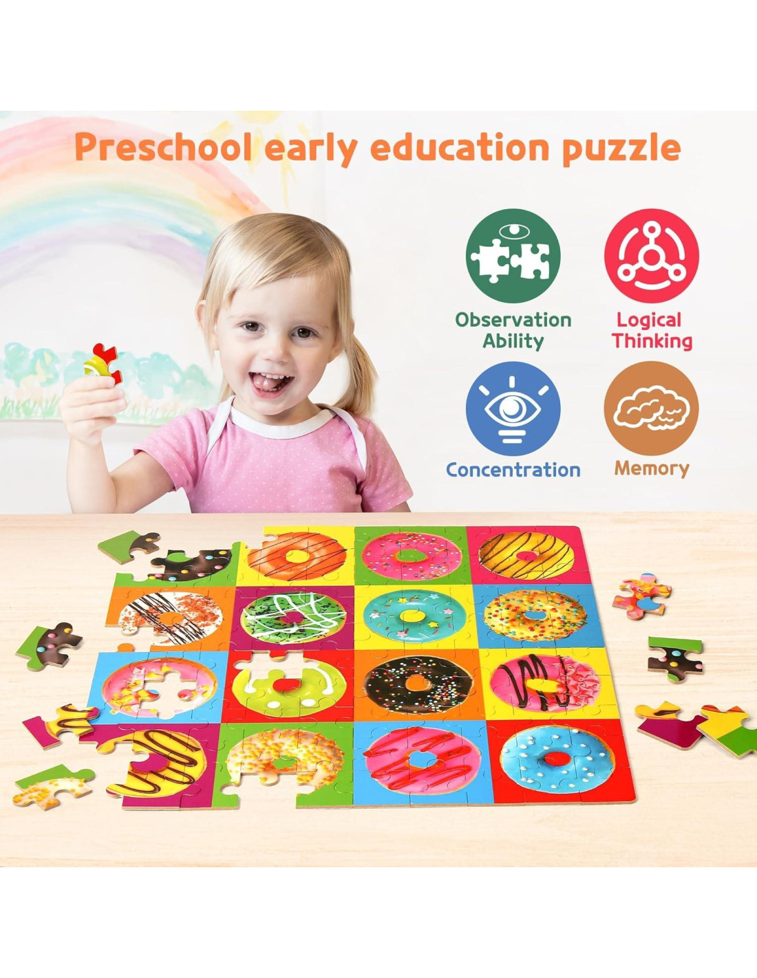 - ROMPECABEZAS EDUCATIVO: Este rompecabezas de emparejamiento está diseñado para ayudar a los niños a entrenar su imaginación, desarrollar la coordinación mano-ojo y practicar la resolución de problemas, así como las habilidades de razonamiento espacial mientras trabajan para completar el rompecabezas. Tu hijo tendrá horas interminables de diversión construyendo el tema de donuts.
