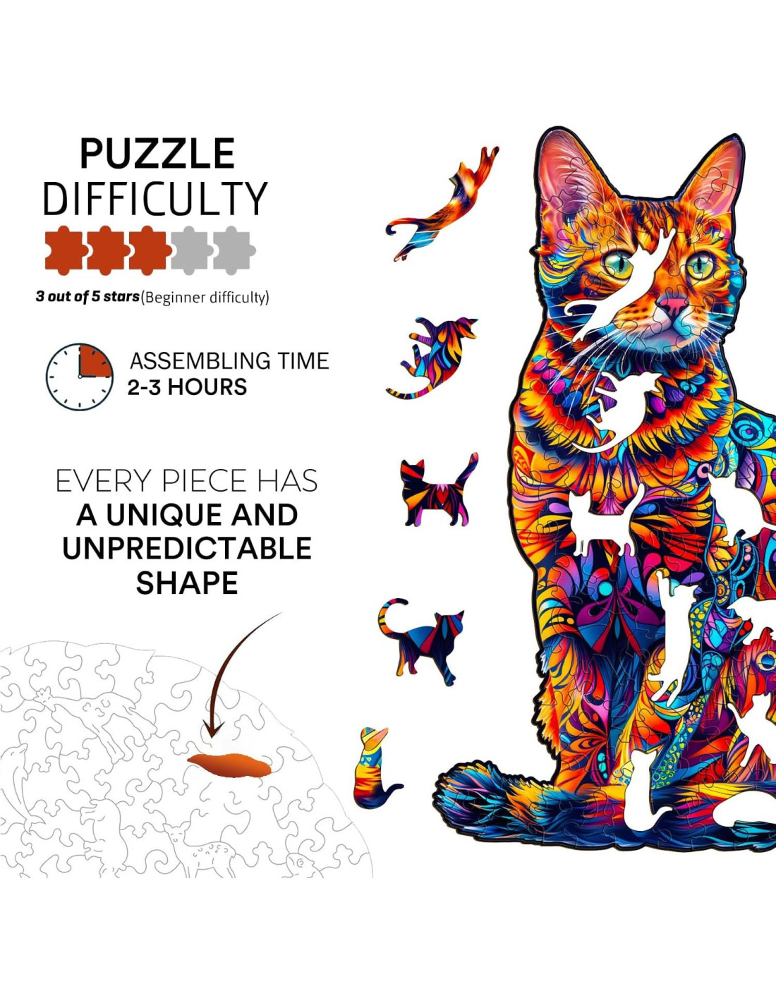 - [Detalles de Alta Calidad] Nuestros rompecabezas de madera están meticulosamente cortados con láser con precisión, mostrando formas de animales detalladas que seguramente cautivarán a los entusiastas de los rompecabezas adultos. Una vez terminados, se transforman en una pieza de exhibición llamativa, añadiendo un toque de encanto a cualquier habitación de tu hogar.