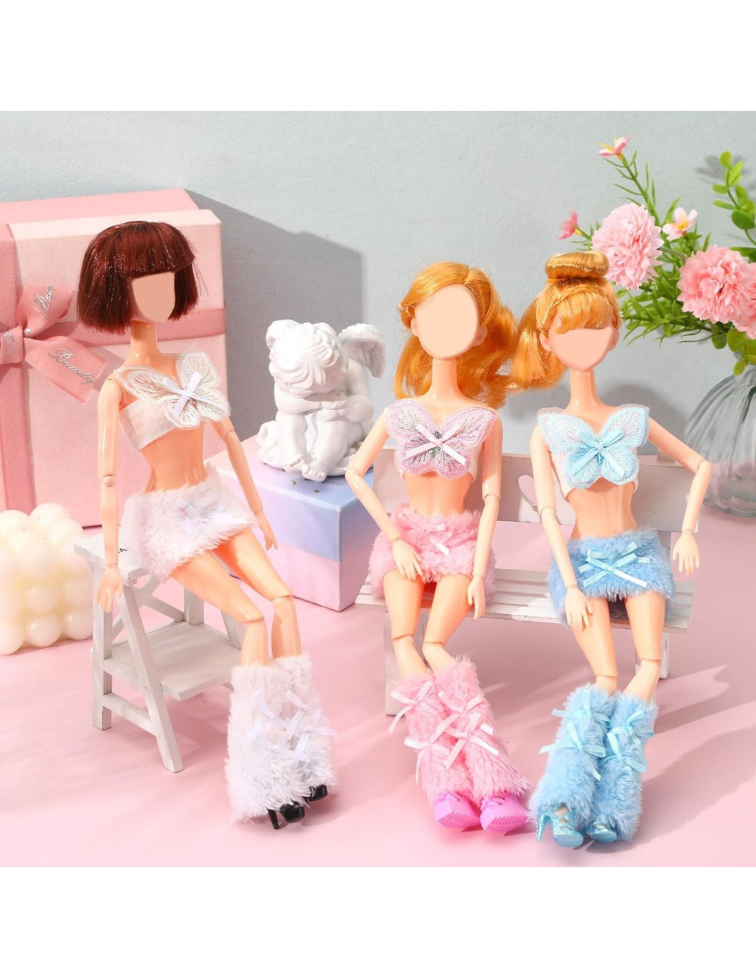 - Diversión DIY: El conjunto de accesorios de 11.5 pulgadas contiene 3 colores clásicos: rosa, azul y blanco. La parte superior es sin tirantes, diseñada con mariposa, la falda y las cubiertas de piernas están hechas de material de felpa, y luego combinadas con lindos lazos, lo que hace que la ropa para 11.5 pulgadas se vea más exquisita y a la moda, para que todos puedan combinar los accesorios de 11.5 pulgadas según sus propias preferencias y creatividad, y también pueden combinar con otras prendas y accesorios.