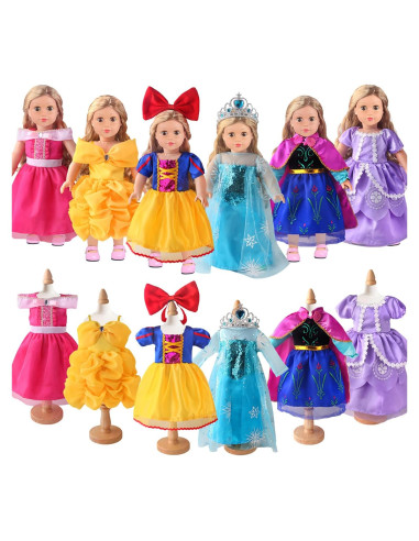 - Conjunto Completo de Vestido de Princesa: Incluye 6 atuendos únicos - 6 Conjuntos de ropa de muñeca princesa para muñecas de 18 pulgadas con 1 diadema con lazo y 1 corona de princesa. (Muñeca NO incluida.)
