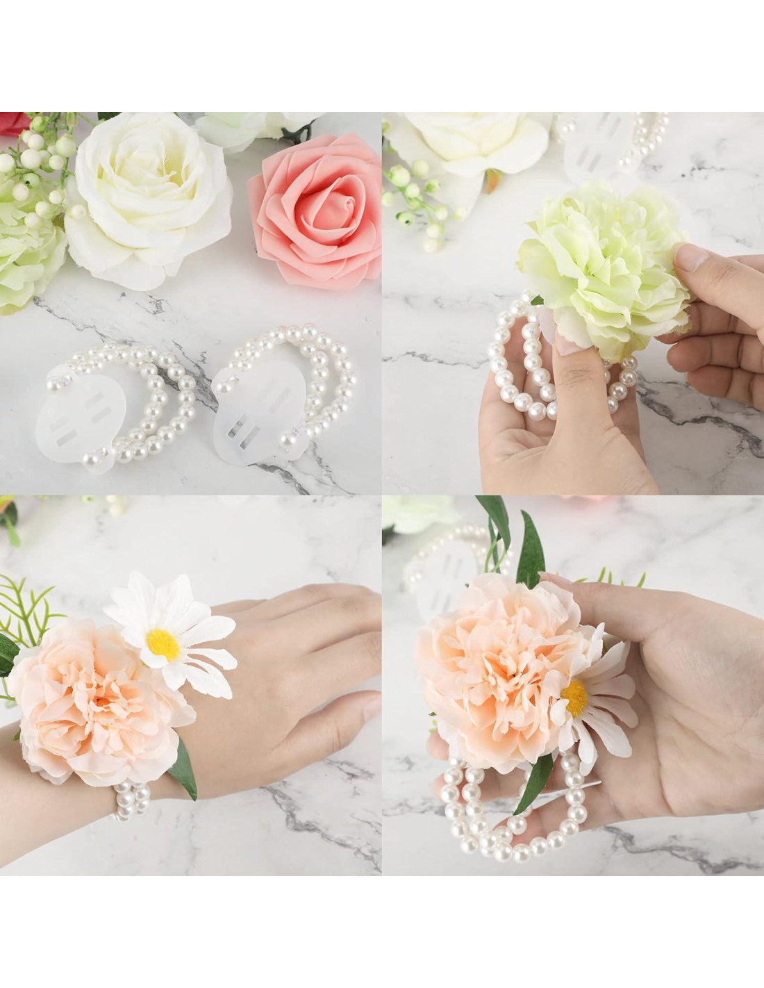 - Diseño considerado: las muñequera de perlas tienen algunos huecos, que están preparados para la inserción de flores, y pueden sostener las flores en su lugar firmemente, también puedes cambiar las flores según tus necesidades, permitiéndote variar tus estilos